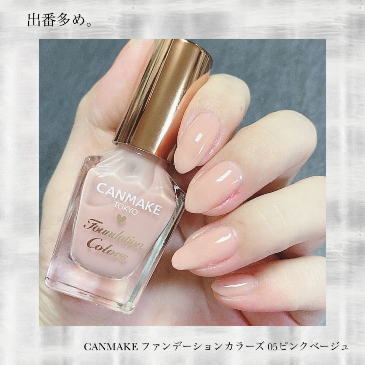 CANMAKEのオールスター揃いで、ナチュラルなデートネイルにしたよ♡今日は相方の母とデート❤そんな時はふんわりやさしいカラーと少しのオシャレ感出したいっ!!グラデーションは手が込んでる風が出せるので、簡単に手早く出来るファンデーションカラー...