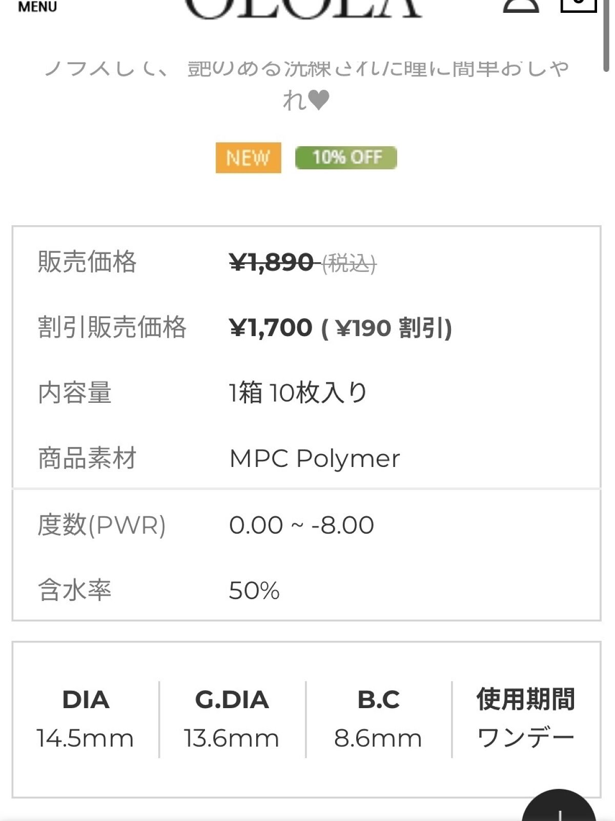 OLOLA ピュアリティーシャインワンデー(PURITYSHINE 1day) | 1,890円 |