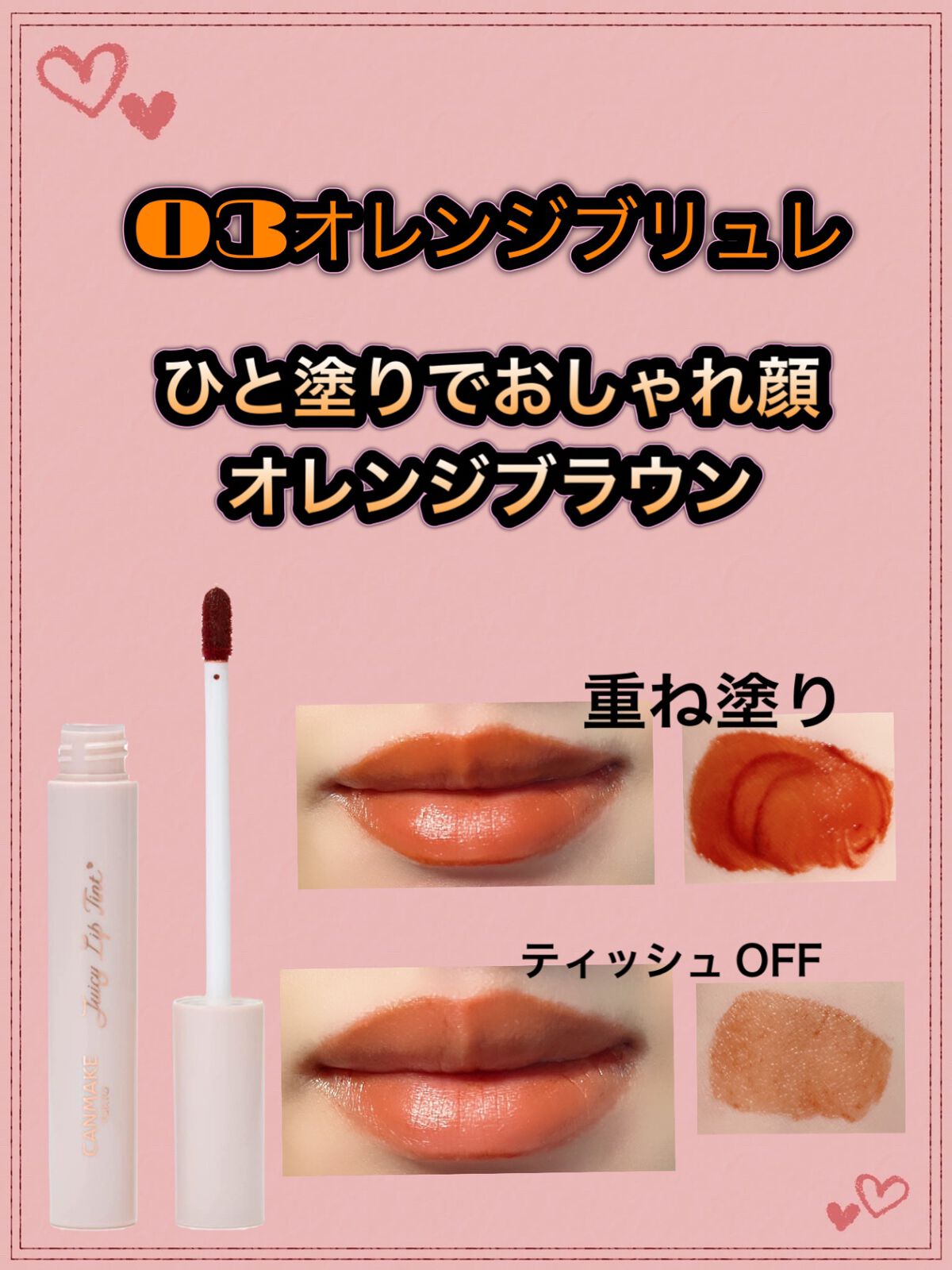 使いやすいピンクです♪ 派手すぎず地味すぎずでいい👍🏻 鮮やかなので血色よくなる🎶 知的で大人っぽい印象になるベージュブラウン こなれた印象になるオレンジ はい、このシリーズの中で優勝です❤️ 私的に粘膜色って感じかな⭐️ クールで色っぽい印象になる深みレッド 柔らかな深みのまろやかブラウン 色的には01番のナチュラルピンクにくすみを少しいれた感じかな🎶 温かみのあるこっくりオレンジベージュ 水に濡れたような軽やかなツヤが持続します。 ティントタイプなので唇に色がフィットして落ちにくく、キレイな発色が長時間楽しめます。 みずみずしい塗り心地で、唇になじむとマットに変化!潤いのある軽やかなマットな唇が持続します。 ティントタイプなので色も長時間持続します。