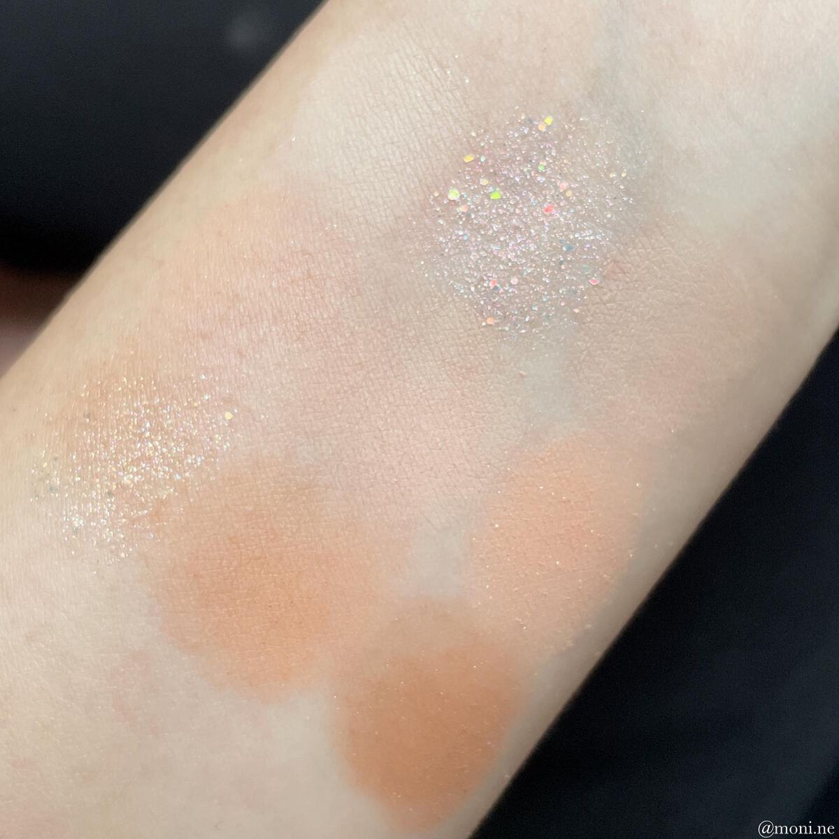 イエベ春が大好きな白みパステルカラー!アイシャドウもチークもふわふわな仕上がりで可愛すぎた😭💖 白みたっぷりの白桃カラー。優しいピーチピンクと、果汁をイメージしたざくざくグリッターがかわいすぎる💭 淡い色味で失敗しづらいのでチーク初心者にもおすすめ。