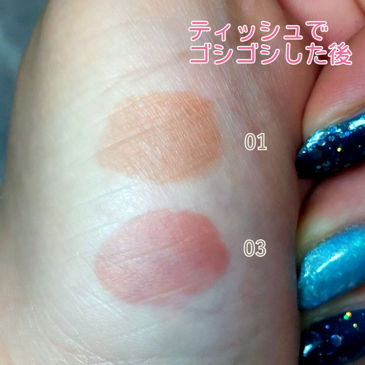 唇に色が密着してツヤのあるジェル膜でコートするティントリップ♡ 美しく色づきながら濡れたような光沢感を与えうるツヤ唇に仕上げる✨ 03の色味は粘膜色のようなくすみピンクベージュでナチュラルで可愛らしい唇にしてくれました♡