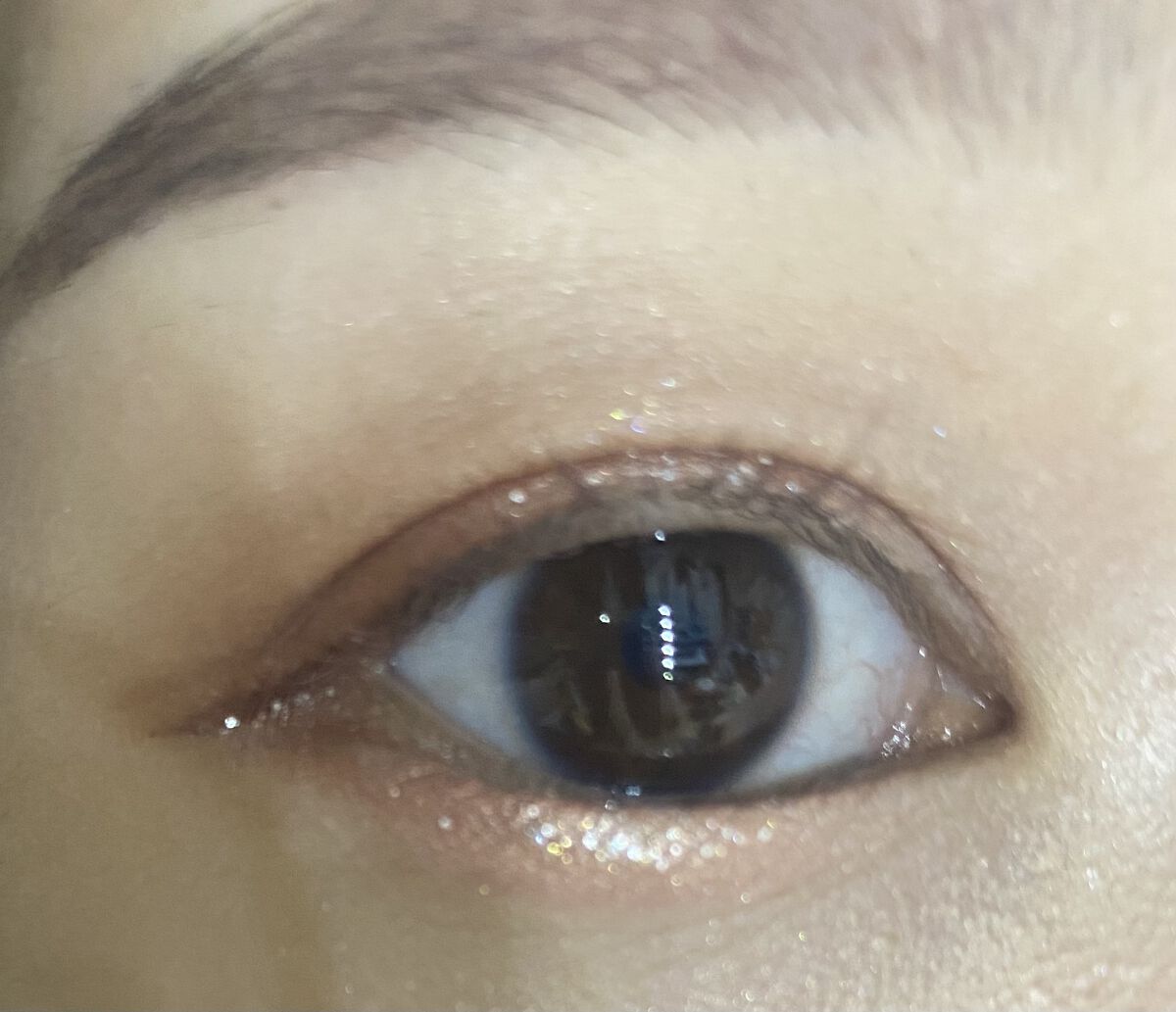 ベースがピンクベージュで、シルバーのラメが入っています! 下まぶたの際に引いたくらいなら、あまりピンクベージュ感はなく、シルバーのラメが主張する感じです。 皮脂とか汗、水に強いかはわかりませんが、手の甲と下まぶたに付けたのを擦ってみても全然取れなかったので、持ちはかなりいい方だと思います! 乾くのが遅いとも特に感じませんでした! とりあえずグリッター使ってみたい欲を満たすには十分だと思います!!!