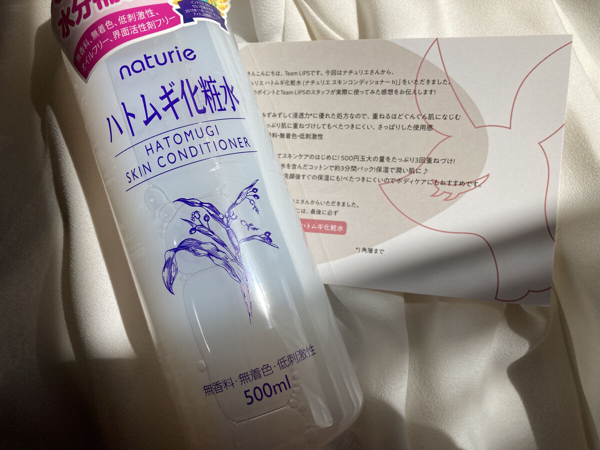 - 肌にうるおいを与えてスキンコンディションを整える、天然保湿成分ハトムギエキス配合の化粧水です。 みずみずしく浸透力に優れた処方なので、重ねるほどぐんぐん肌になじみ、角質層を水分で満たします。 たっぷり肌に重ねづけしてもべたつかないさっぱりした使用感なので、スキンケアのはじめにたっぷり使ってください。 肌がひんやりしてきたら十分に水分がなじんだサインです。 ■基本は化粧水として スキンケアのはじめにたっぷり使ってください。 500円玉大の量を3回重ねづけするのが目安です。 肌がひんやりしてきたら十分に水分がなじんだサインです。 ■ローションパックでさらにうるおい コットンやフェイスマスクにたっぷり含ませて約3分間パックすると、角質水分量がさらに高まります。 ■プレ化粧水として 洗顔後すぐにつけることで、その後につけるスキンケアのなじみをよくします。※角質層まで ■ボディにも べたつかないので、毎日の入浴後や日差しを浴びた後などのボディのスキンケアにもおすすめです。