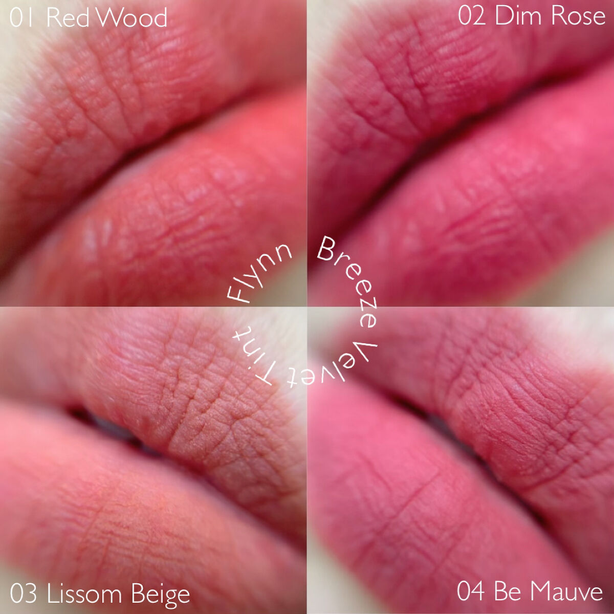 \Flynnブリーズベルベットティント/01レッドウッド02 ディームローズ03 リッソムベージュ04 ビモーヴふんわり唇にのる感触と色落ちしにくいところがお気に入り❤️#Qoo10メガ割...