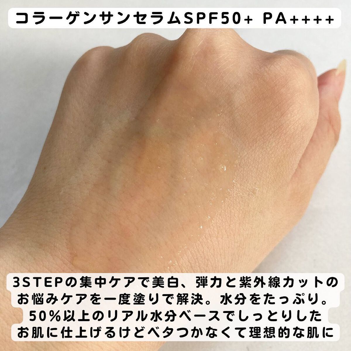 水分たっぷりでスキンケア感覚で塗れて使いやすく うるおいのある肌に😍 三重機能性で美白、シワ予防、紫外線カット機能☀️ SPF50+PA++++で肌を紫外線から守ってくれます⭕️ コラーゲンで弾力ケアなどもメイクしながら出来るのも良いところ❣️
