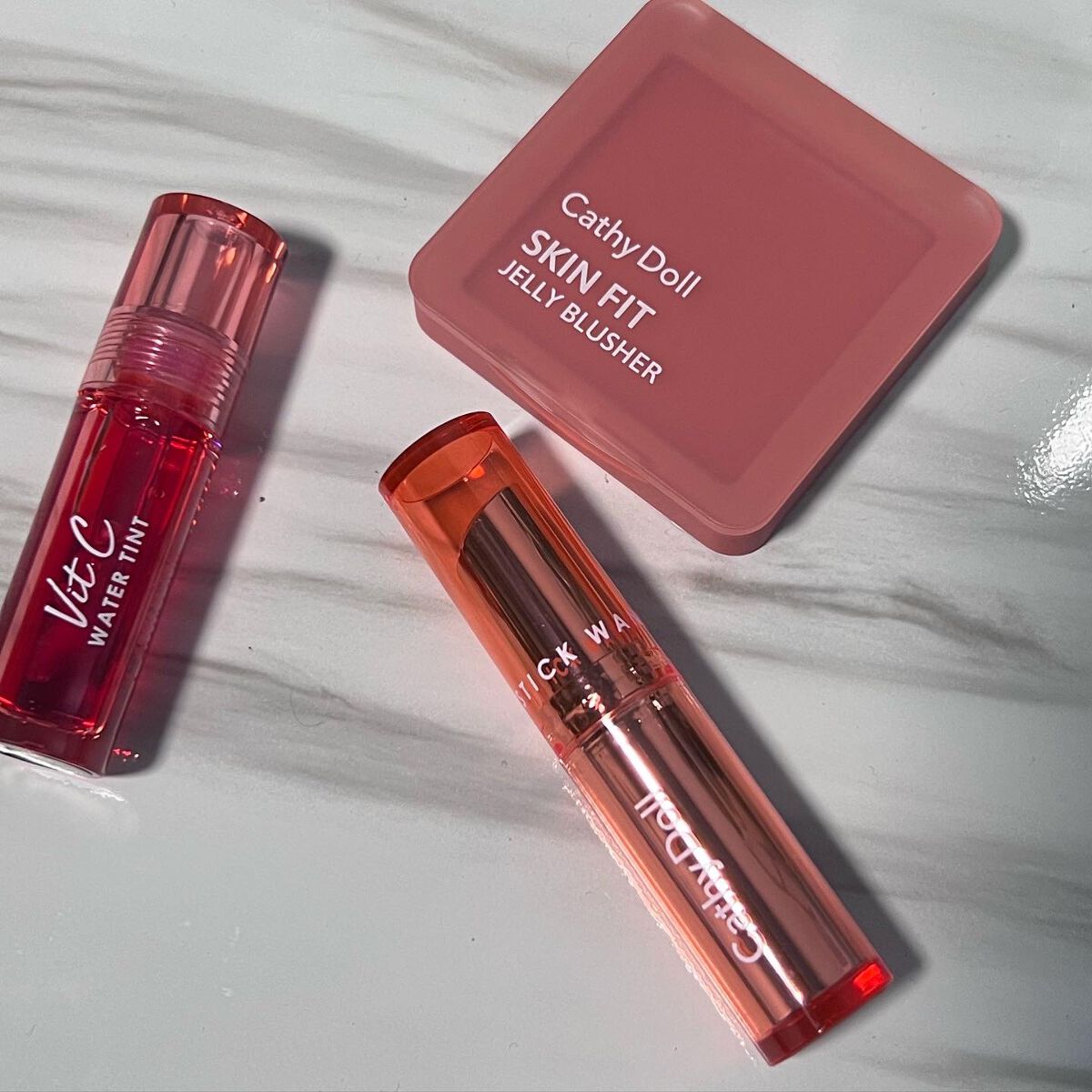 世界は広いね…🇰🇷🇨🇳🇹🇭 タイコスメが第三のコスメって言われてるんだって!! 現地では知らない人がいないくらい有名ブランドの #キャシードール プチプラなのにレベルが高いらしく国民的ブランドなんだって!! 今回使ったのはその中でも人気の3種類! どれも見た目がポップで可愛い💕 一見すると派手な見た目だけどどれも馴染ませたり調節が効くから好みの鮮やかさにできるよ👍 コーラルピンク系の #スキンフィットジェリーブラッシャー と #ワンナシャインリップを使ってメイク💄 チークがマットっぽい仕上がりだからツヤっぽいリップと相性抜群🙆♀️ これはほんの一部だからまだまだ挑戦する余地がありそう🙌