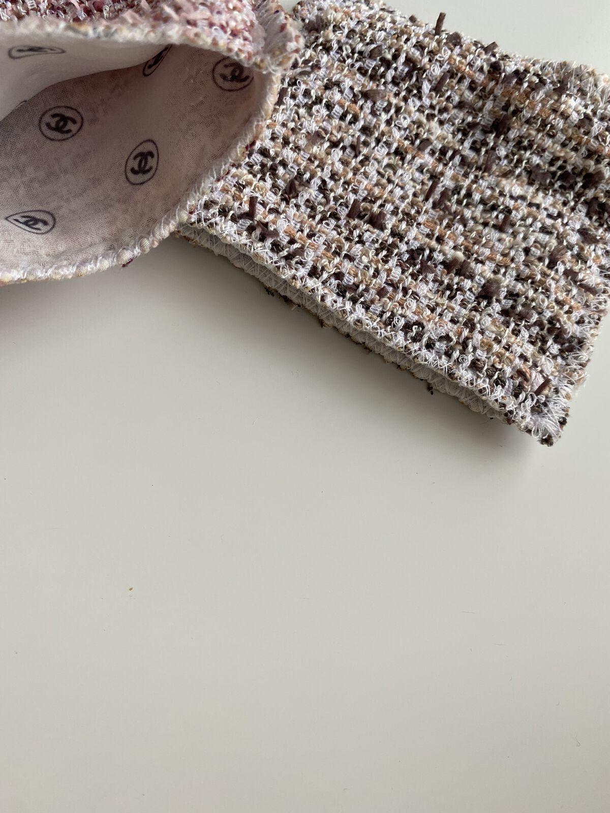 限定4色のうち予約をしに都内店舗へ行ったときに 実際に手に出してから迷いに迷って決めた2色。 02(左ピンク・モーヴ) 04(右ベージュ系)を購入 02 #ツイードプールプル もう見た目も可愛らしいピンク・モーヴで光沢のある優しいカラー 04#ツイードブランローズ とても上品な配色。左下のベージュピンクが好みすぎるのと、キラキラがとってもかわいい✨ 04のベージュパレットは、実物のカラーを、見てから購入を決めました! 一色だけ買う予定が実物みたら、欲しくなっちゃいました🥰 ケースもツイードで可愛い💕 ケースの裏地までシャネルのマーク入り✨