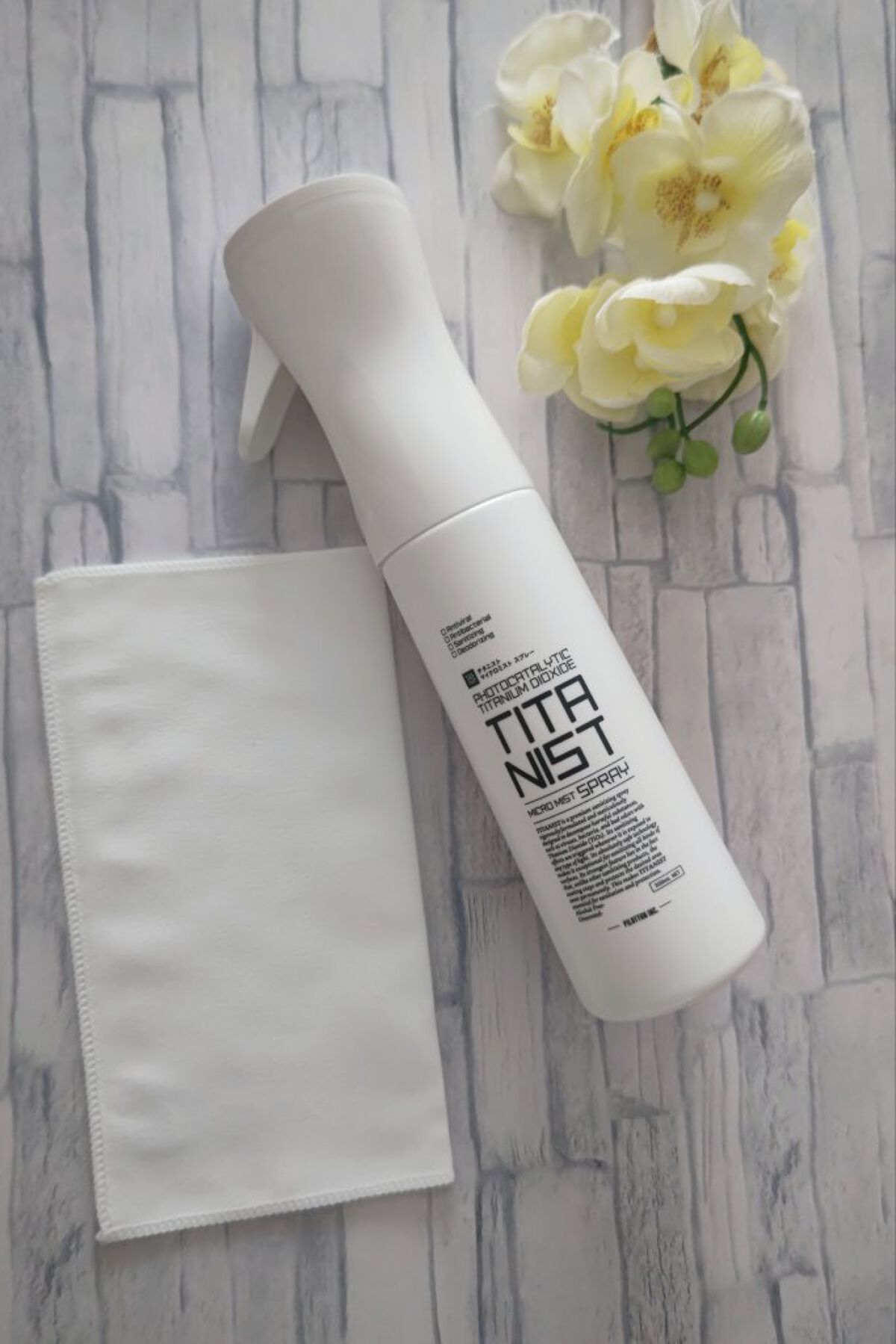 - ワンランク上の本格的な消臭除菌を追求する光・消臭除菌スプレー。高密着チタンコーティングによる光触媒技術で、強力な除菌・抗菌・消臭・ 抗ウイルス効果が持続します。原材料は第三者機関にも安全性を認められた水溶性酸化チタンと水のみ。香料、アルコール、化学系除菌剤や防腐剤を一切使用していないので、赤ちゃんやペットのいるご家庭でも安心してご使用いただけます。