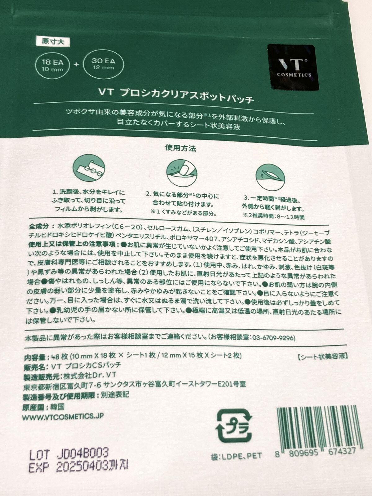 商品詳細情報VT プロCICA クリアスポットパッチ