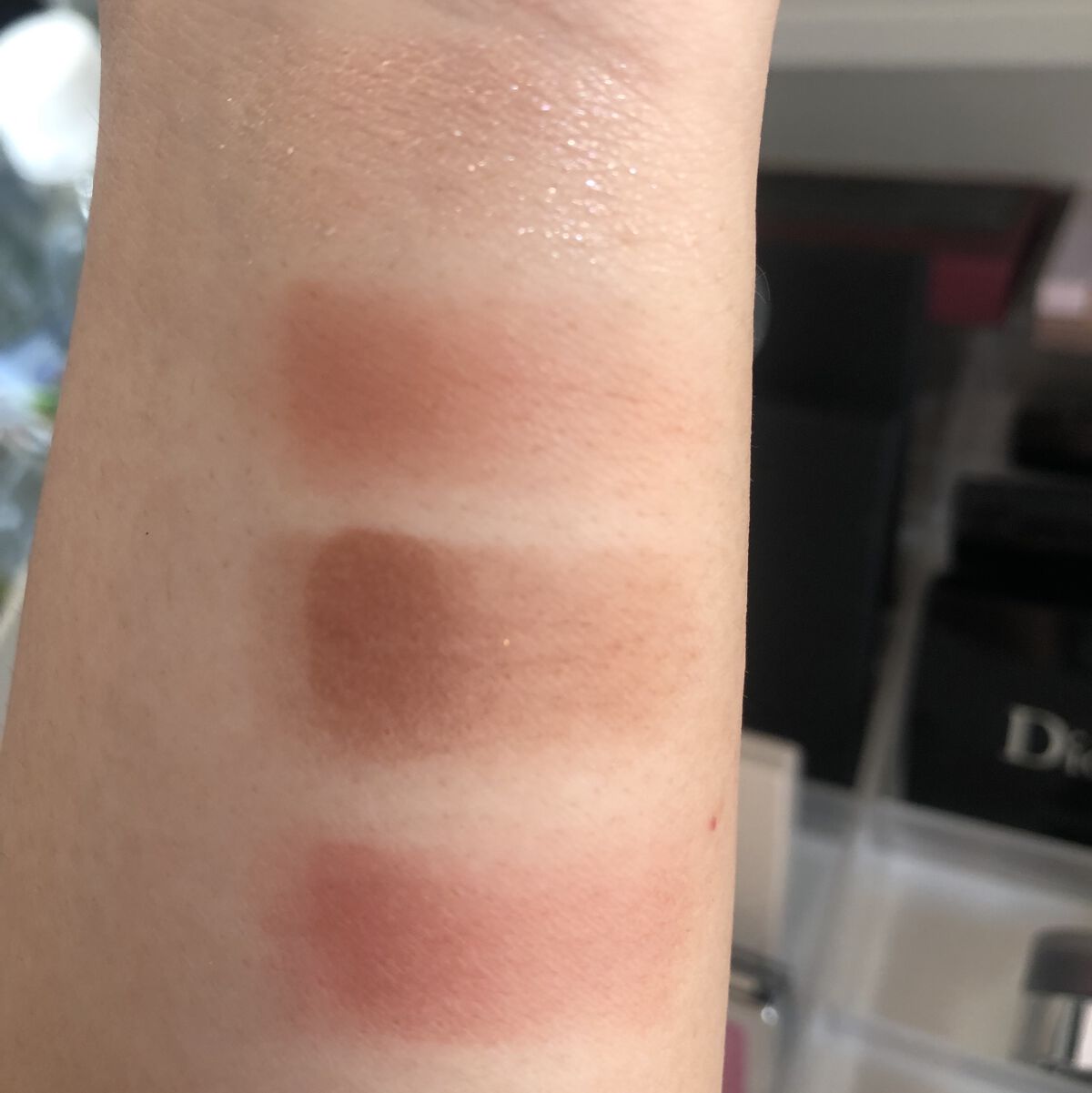 バームハイライトも入っている パレット珍しいですよね🫣 1番濃ゆい茶色のカラーで アイライン用カラーだなと思っていたのですが かなり淡い発色で、あかりんが アイホールに先に塗って使っていたのが 大正解なカラーでした!可愛い。 ラメ感もギラギラで可愛い。