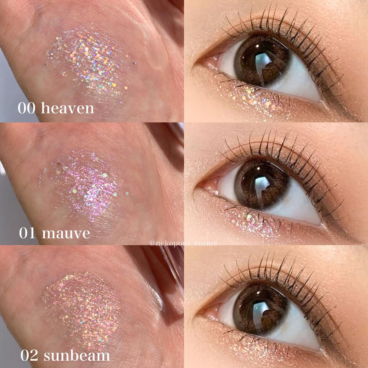@dear.a_japan_officialさまよりいただきました🎀··🤍Dear.A🤍✔️VeganGlitterEyeshadow🤍00heaven🩷01mauve🧡02sunbeam··💎ガラスのような透明感のある光沢&カラー💫その日の...