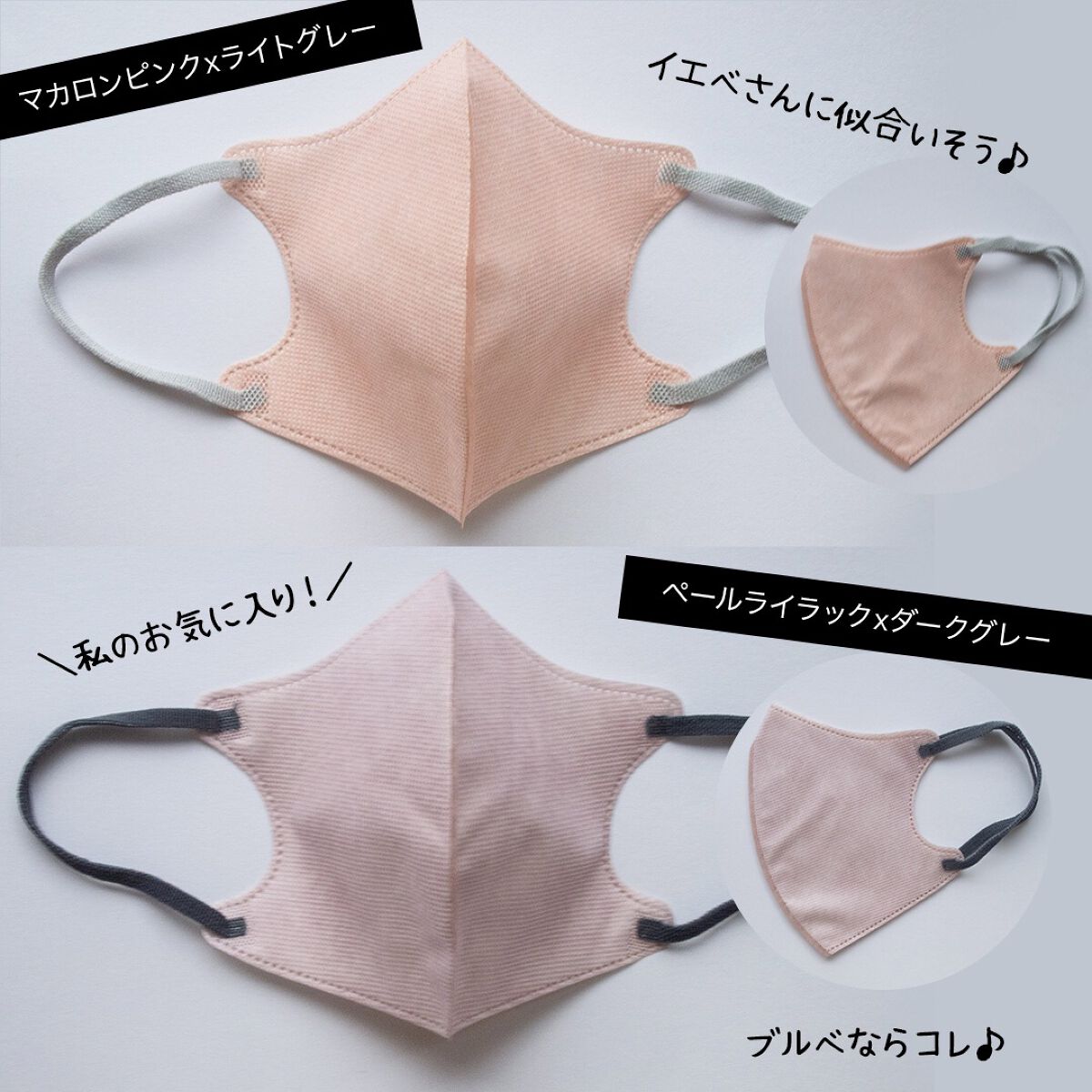 汚れが目立ちにくいベージュ色で遊ぶ&コーデを楽しむ🤍 ①こだわりの“角度”でマスクのズレ落ち軽減 ②口元の空間が広く 呼吸しやすい 個人的に好きなカラーはライトグレー✖️ブラック🤍ブルベさんにおすすめの綺麗見えカラー🤍