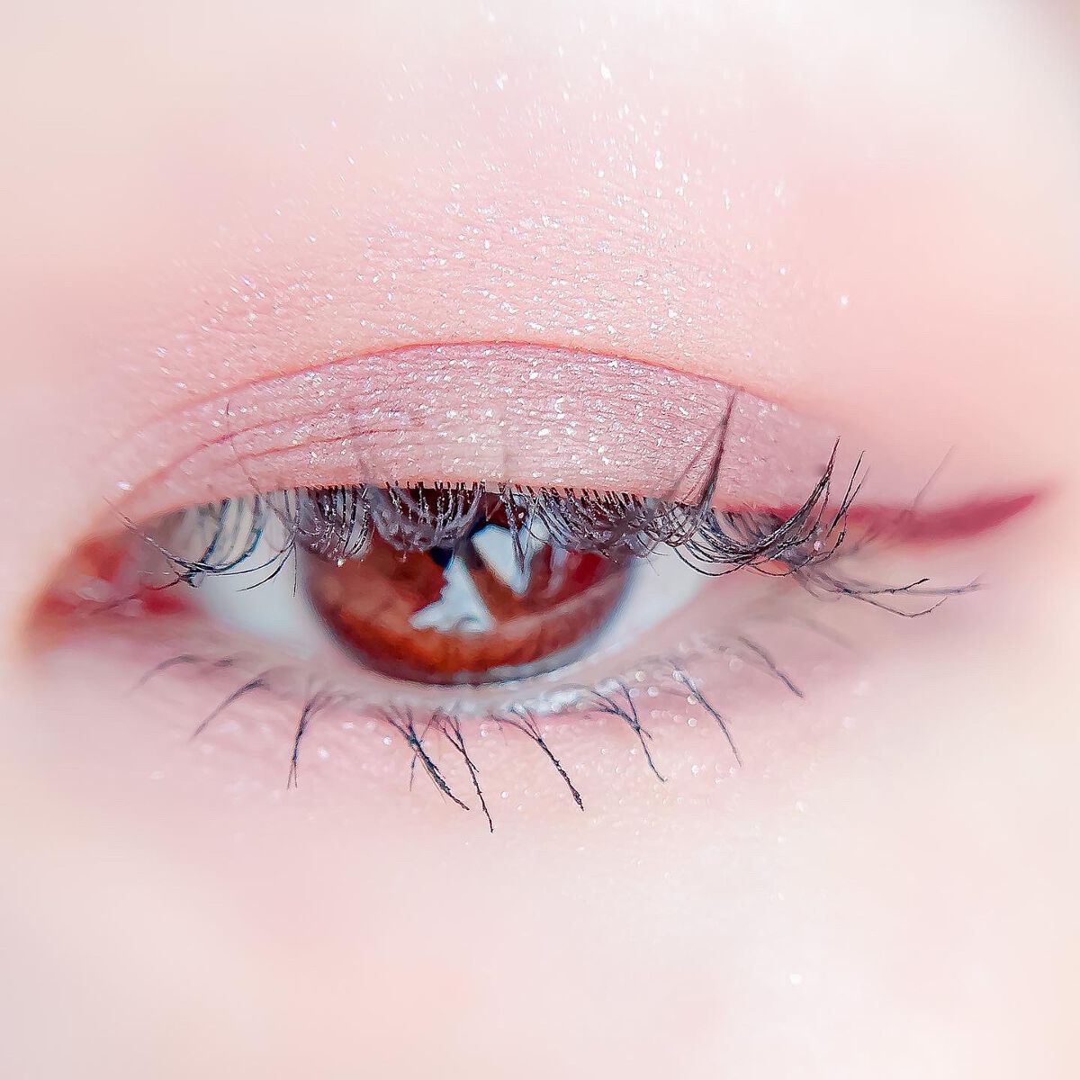 ピンクにグレージュも良いですね👌💗 今日は可愛らしい感じにしてみました💕 上下瞼黒目〜目頭側にラメを塗ってキラキラさせております🤩 目尻はマットのピンクを濃いめに重ねて💗 グレージュのアイライナーと相性◎