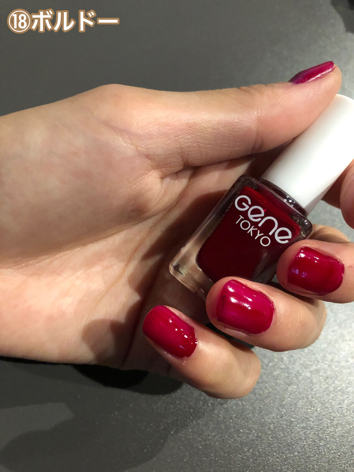 GENEネイルは、DAISOで¥100✨✨✨ 流行色やおしゃれなカラーが揃っています‼︎ 手軽に指先のおしゃれができるので個人的に重宝しています❤️ ⭐️ボルドー 結構鮮やかなレッドカラーです❣️ でも、朱赤ではなく、肌馴染みもいいです。 ホワイトネイル💅ってとってもおしゃれな感じで可愛いですよね❣️ ⭐️マスタードイエロー 今の季節🍁にぴったりなこっくりイエロー💛 グレーがかったくすんだブルー🫐です。 カジュアルでおしゃれ感の高い雰囲気になります。 グレーがかったくすみパープルです💜 こちらもおしゃれ感度の高い雰囲気です。 アーモンドカラーのベージュです❣️ オフィスでも浮かないし、それでいておしゃれな感じも‼︎ 明るめのカーキです❣️ 今の季節🍁に映えますね‼︎