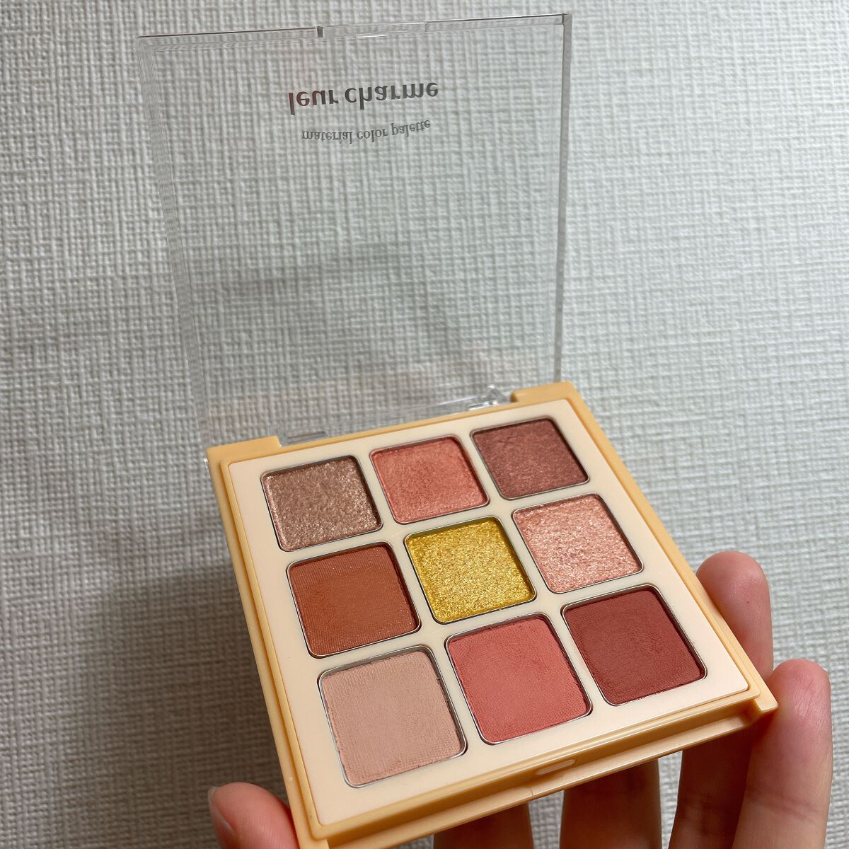 発色と質感にこだわった日本製9色アイシャドウパレット「leur charme material color palette(ルルシャルム マテリアルカラーパレット)」 煮詰めた果実の奥深さとみずみずしい輝きがとけこむ、奇跡のぜいたくパレット しっとりした粉質で高密着!ラメの輝きがえぐいほど綺麗✨ 温かみのあるイエベカラー!