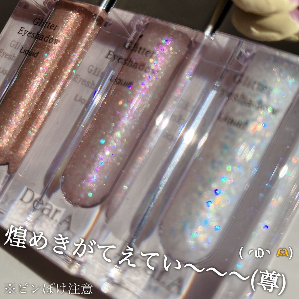 #Dear.Aさんのモニターイベントでの#当選品でグリッターアイシャドウ3色セット頂きました❣️うるちゅるキラキラで見た目も可愛い😍しかも5つの美容成分入りでヴィーガンコスメなんだって👏00heavenはクリアホワイトに偏光オパールで大粒キラ...
