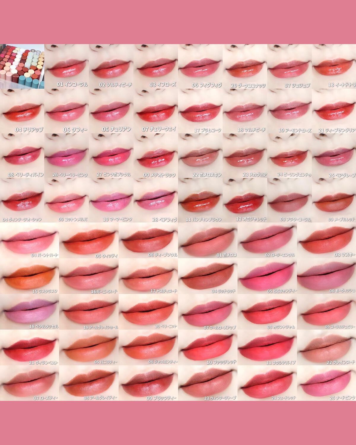 私の大好きなrom&ndのティントリップ! マットリップ29本 ツヤリップ32本 イエベさん向き▶︎01〜04、09番 ブルベさん向き▶︎05〜08、10番 イエベさん向き▶︎01〜04、09.10番 ブルベさん向き▶︎05〜08、11番 イエベさん向き▶︎05、15〜17、19、20、22、23番 ブルベさん向き▶︎04、06、18、21、24、25番 イエベさん向き▶︎05、06、08番 ブルベさん向き▶︎07、09番 イエベさん向き▶︎08番 ブルベさん向き▶︎09番 イエベさん向き▶︎04、12番 ブルベさん向き▶︎11番 イエベさん向き▶︎07、13、18、21〜23 ブルベさん向き▶︎06、17、19、21、24〜28番