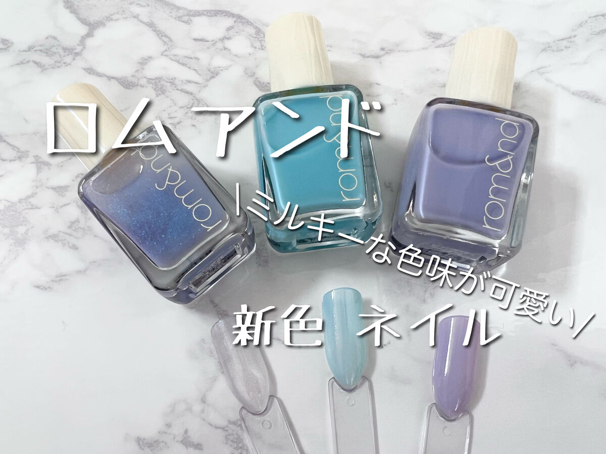 - 指先に玉石のような、ならかな光沢をとどめる。塗った瞬間から綺麗なツヤと光沢を維持し、重ねて塗っても透き通ったカラー感を鮮やかにとどめる、素早い乾燥力のナチュラルカラーネイル。「ロムアンド」の次世代型ネイルです。