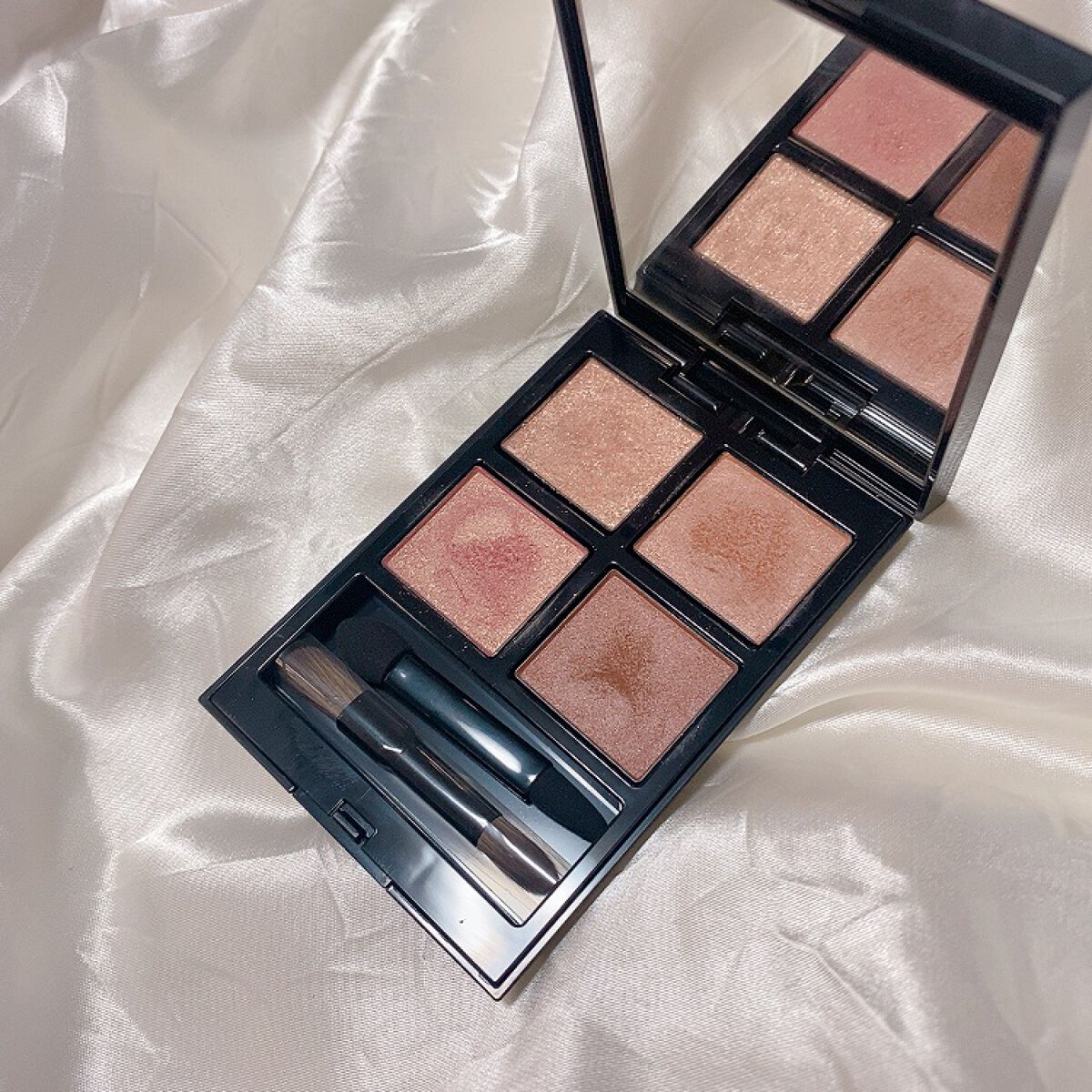 儚げカラーが可愛いすぎるピンクブラウンパレット🎨 くすみ感ありそうに見えて、くすみはほぼなくどう塗っても可愛い目元が完成する天才的配色!! 忙しい朝のつよおおおおい味方💪 そしてばたつく朝の相棒🫶🫶なくてはならないビックLove🫶 ささっと塗って仕上げたとは誰も思わない完全無欠eye🥰 絶対リピートすると決めてるアイシャドウ🥳🥳