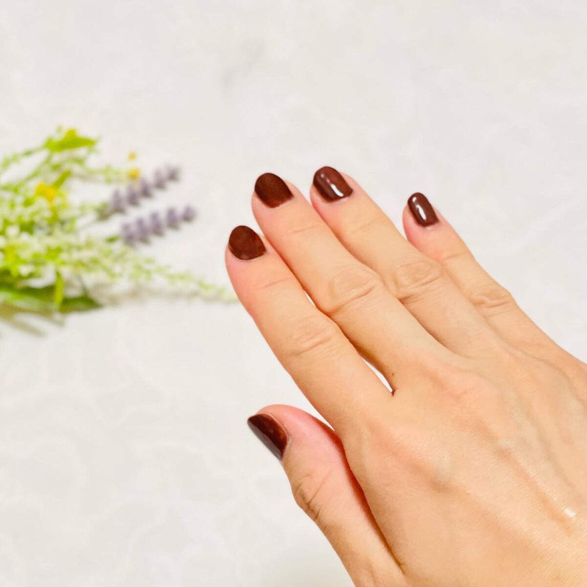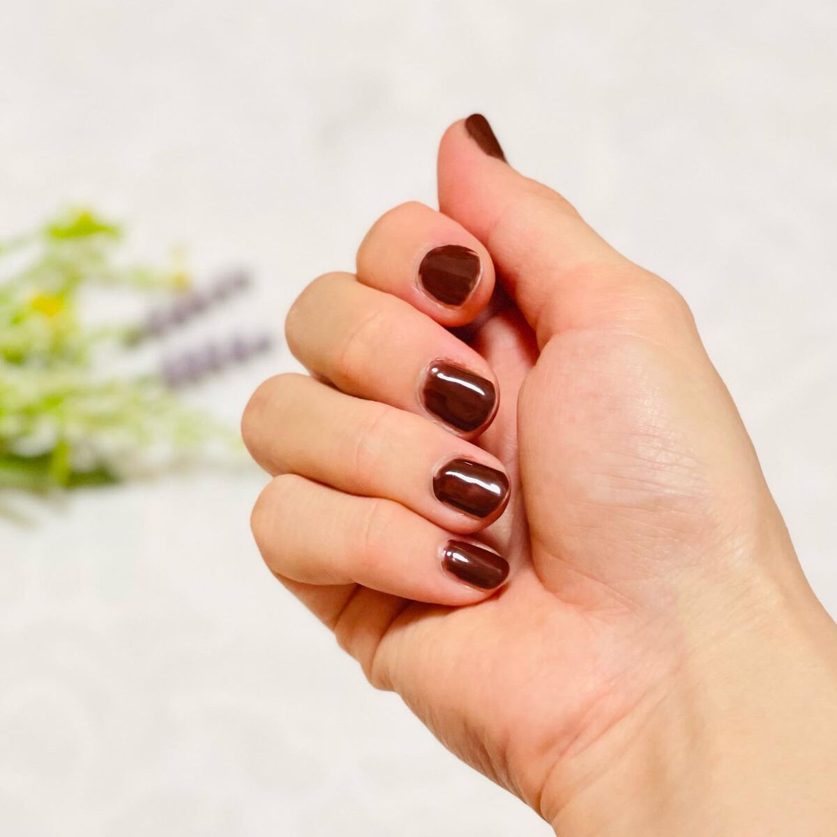 剥がしてオフできるオールインワンジェルネイルで超簡単にお洒落な秋ネイルができた…🍁❣️ 2023年年間売上店頭2位・WEB3位と特に人気なモカベリーカラー。 オフも専用のものなど必要なく、爪で剥がすだけなので楽ちんでした🙂↕️