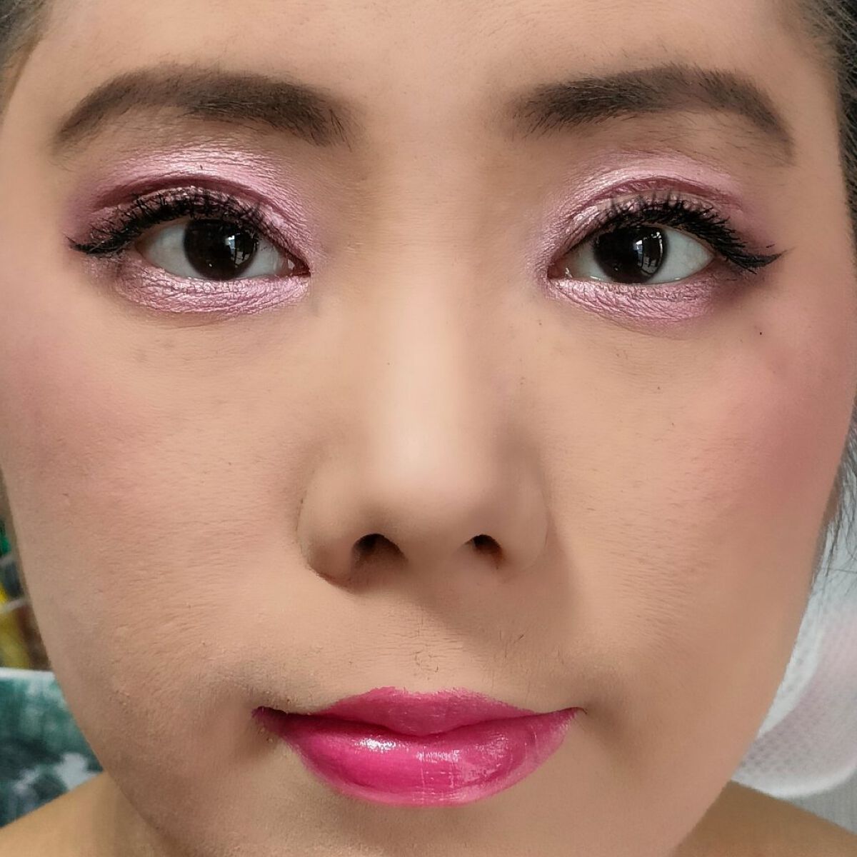アイシャドウパレットは、UR GLAM アイシャドウパレットを、使用しました。 リップは、M・A・C リップスティック ピーチストックを、唇全体にまんべんなく塗ります。