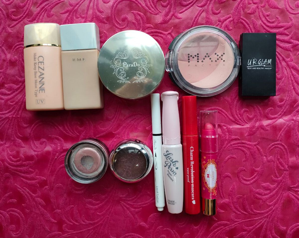 アリィー ニュアンスチェンジUV ジェル RSを、顔全体にまんべんなく塗ります。 RMK RMK ジェルクリーミィファンデーション 103を、顔全体にまんべんなく塗ります。 ジョンソンベビー ジョンソン ベビーパウダーを、顔全体にまんべんなく軽くはたきます。 THE BODY SHOP bronze shade warm glowを、両頬に塗ります。 KATE リフレクトミラーアイズ BR-1の締め色を、眉毛全体にまんべんなく塗ります。 URGLAM UR GLAMBLOOMING EYE COLOR PALETTE 01を、使用しました。 ちふれ リキッド アイライナー 筆ペンタイプ BK30 ブラックを、塗ります。 CEZANNE エアリーカールマスカラを、まつ毛全体にまんべんなく塗ります。 MAYBELLINE NEW YORK コロッサルボリュームエクスプレスを、まつ毛全体にまんべんなく塗ります。 MAYBELLINE NEW YORK SPステイ マットインク 135を、唇全体にまんべんなく塗ります。