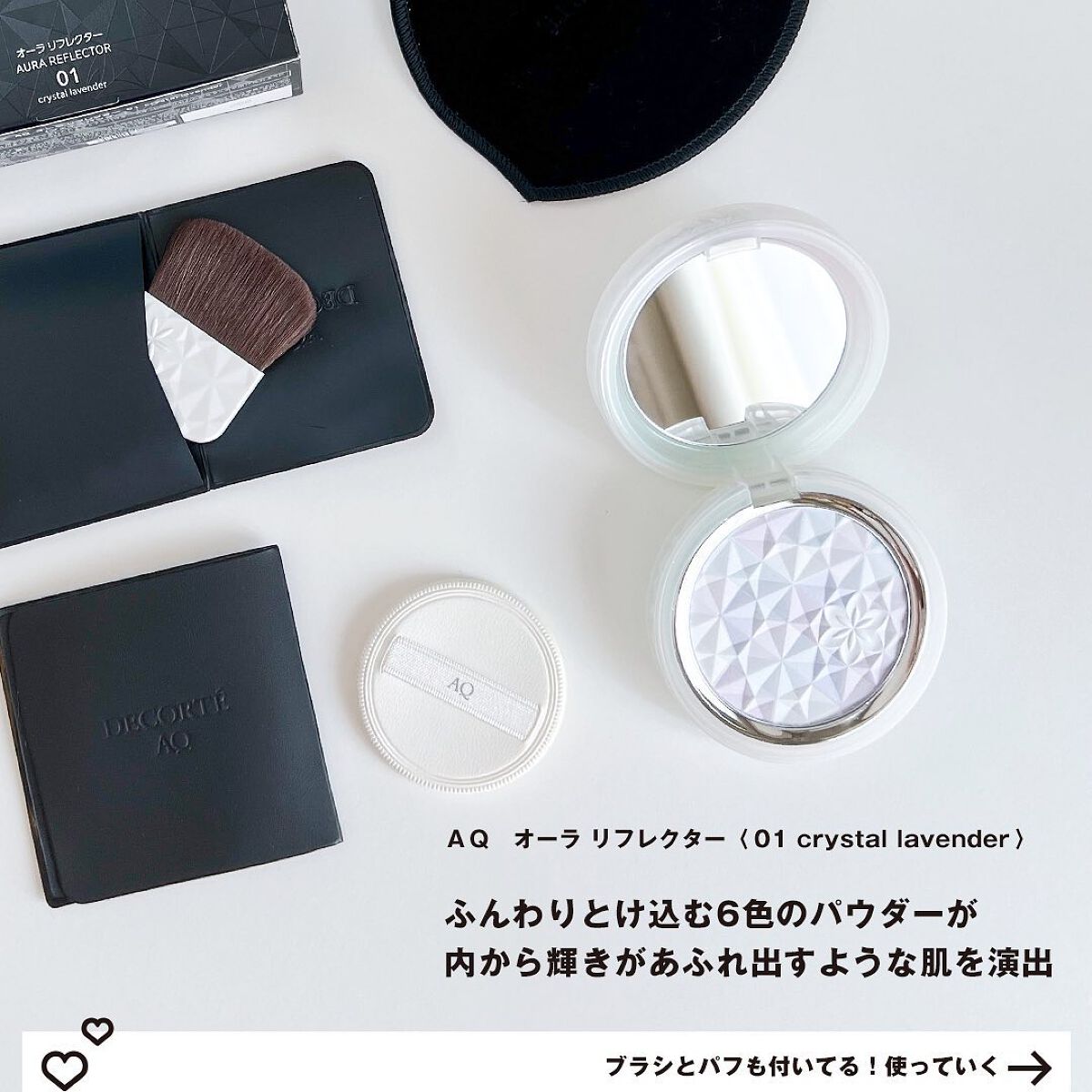 コスメデコルテAQオーラリフレクター01crystallavender澄み渡る空気のように静謐な印象リピートパウダー♡AQスキンケアにも配合されている美容成分が配合されていて、美しい仕上がりが長時間持続♡しっとりなめらかなテクスチャーでツヤ感...