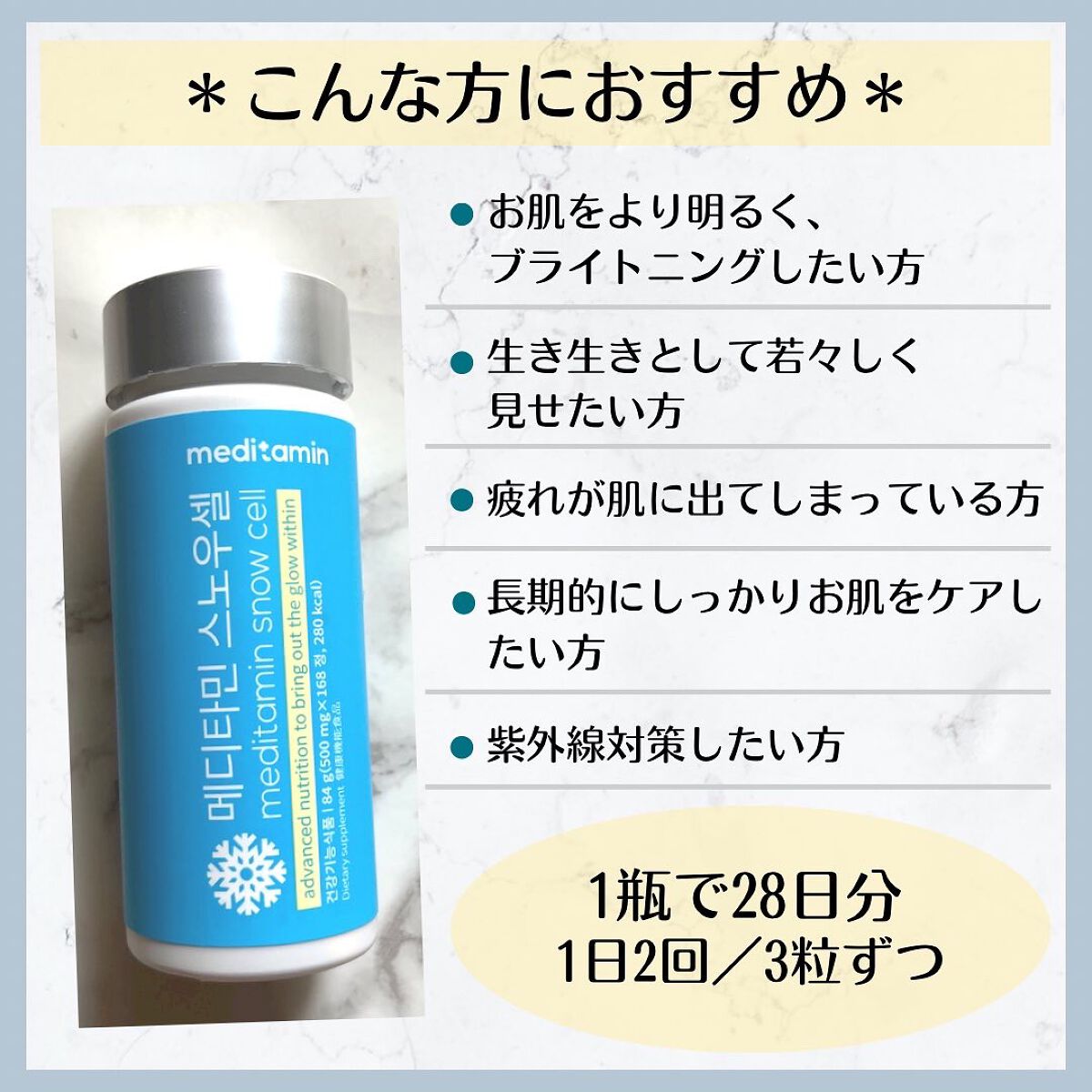 meditaminスノーセルリポ・ホワイト話題沸騰中❗️今、売れている純白サプリ✨透明感のある肌を目指してる方、必見!飲むだけ簡単ケアで毎日明るい肌に。\高純度グルタチオンと新成分のビライト™︎/リポソーム工法で吸収力UP!美容のサポートに。...
