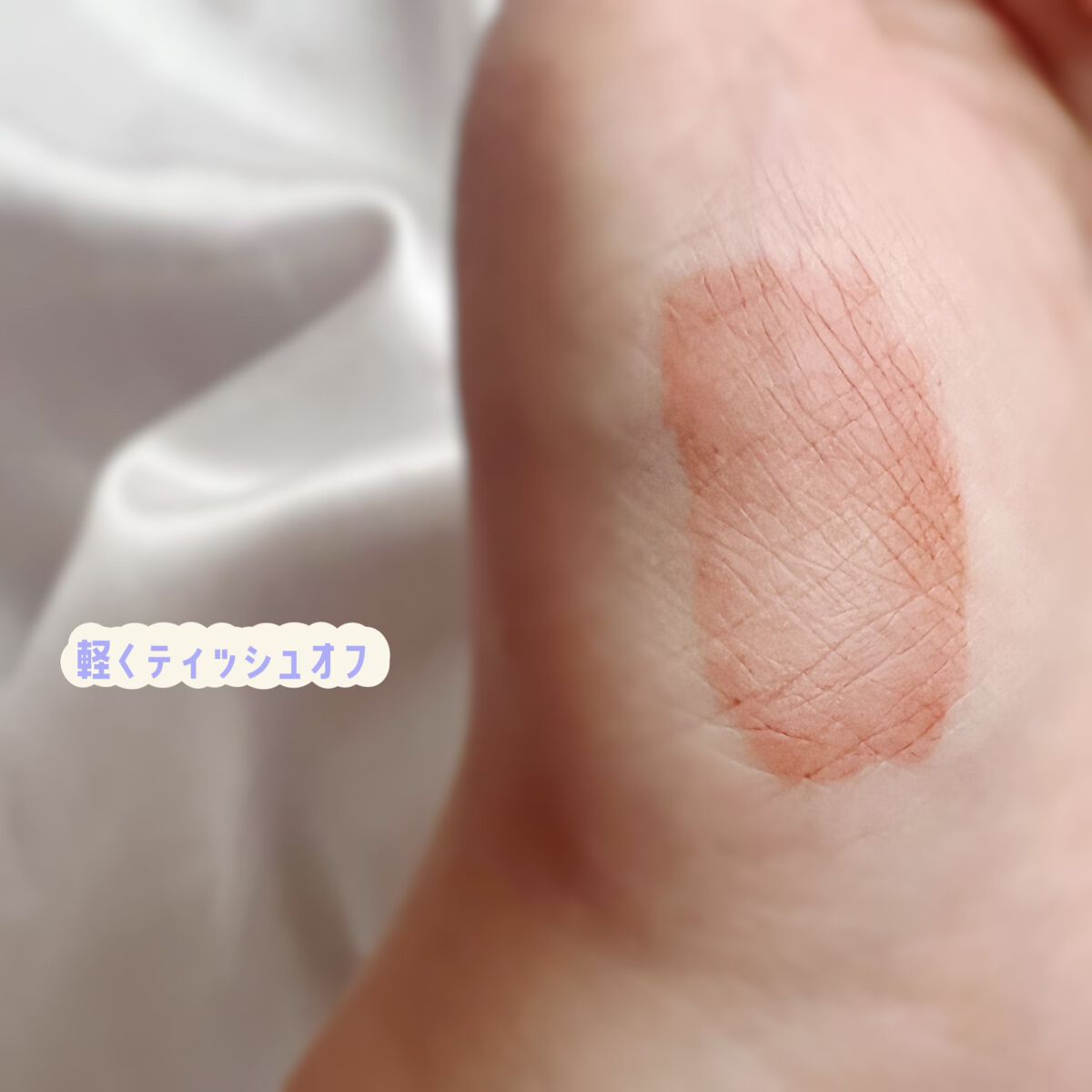 今までみんなご存知のジューシーラスティングティントも愛用してますが 自分的にはかなり高級感がアップした↑ 実物みて感動するぐらいめっちゃ好きなパケ😭🌷 名前通りピーチカラーでイエベさん絶対買って欲しいかわいい色です❤️ イエベさんでも簡単に使えるローズカラーで デートにおすすめなお色です◎ オレンジブラウンカラーで 塗ったら一気にオシャレになれるし秋にぴったりなカラーです🍁 正直。既存のジューシーラスティングティントと似てるような質感ですが くちびるに塗ると新作のほうが若干塗りやすくなった気がします 色持ちは相変わらずめっちゃ良いです◎ 画像の7枚目からはスウォッチ、参考になればと思います。 ティッシュで擦っても色はちゃんと残ってる 既存のティントリップは甘いキャンディな匂いがしたが、 今回の新作は少し匂いもしますが、嫌な甘い匂いではない。 匂い人それぞれ感覚違うですけど、個人的には結構大丈夫だし、むしろ前の商品より好き♡