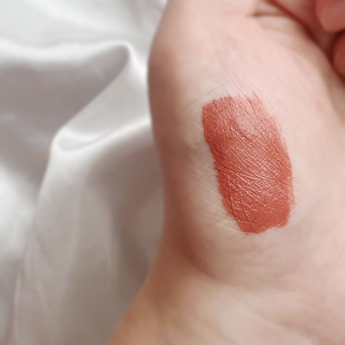 ぼかすとオレンジが若干 顔を見せる🧡🤎 めちゃんこかわいい 個人的推しカラー💗 毒っ気も感じとれる 毒林檎ルージュ(?)🍎 大人っぽさや優しさが溢れてる👌 ベタ塗りとぽんぽん塗り(ぼかし塗り)とでの 顔が全然違うので 1色でふたつの顔が作れる🫶💓 飲み物くらいなら耐えられる 強い💪 秋冬にかけては大活躍しそう マットリップ好きさんや大人っぽリップ好きさんは 刺さるかと思います😍💋