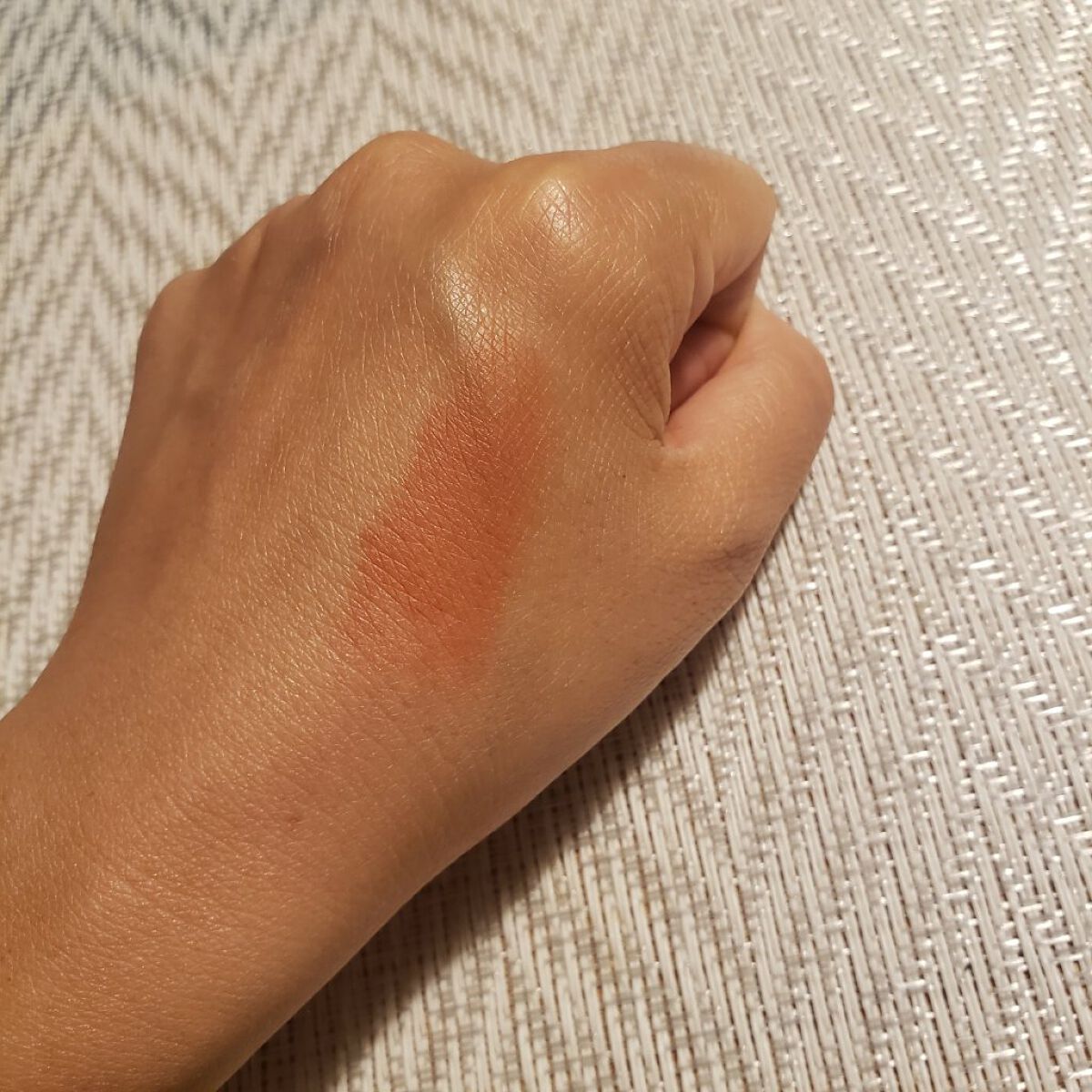 質感は、、、クリームっぽいかなぁー。 クリームっぽい感じしっとりとしているけど、1度塗りだと①~③は色づきが薄く試しに腕でやったのは、3回重ねてます! 実際にメイクしてみると、薄付き具合がちょうど良く、平日お仕事でも使えるカラーかも⁉️ 一度塗りでもう少し発色がいいと良かったけど、使いながら発色を研究していこうと思います! 秋にはめちゃくちゃ使えるカラーです!