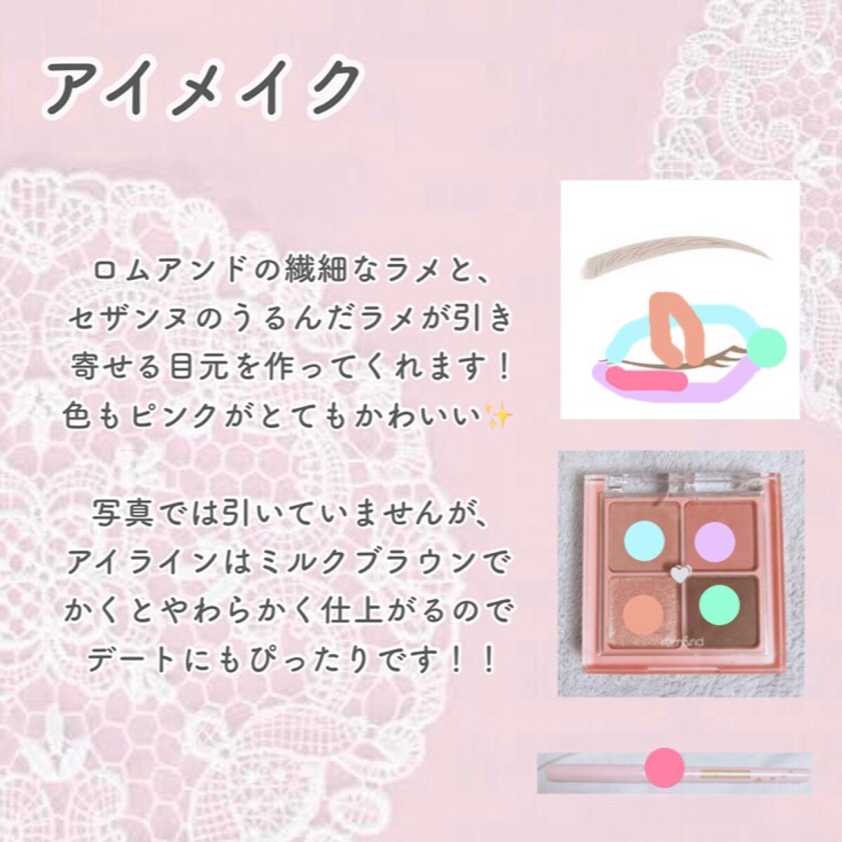 | アイシャドウパレットランキング第42位 | 4色で目元がめちゃくちゃ綺麗に仕上がる♡綺麗にラメが乗るので本当にかわいい! | 詳細を見る | |