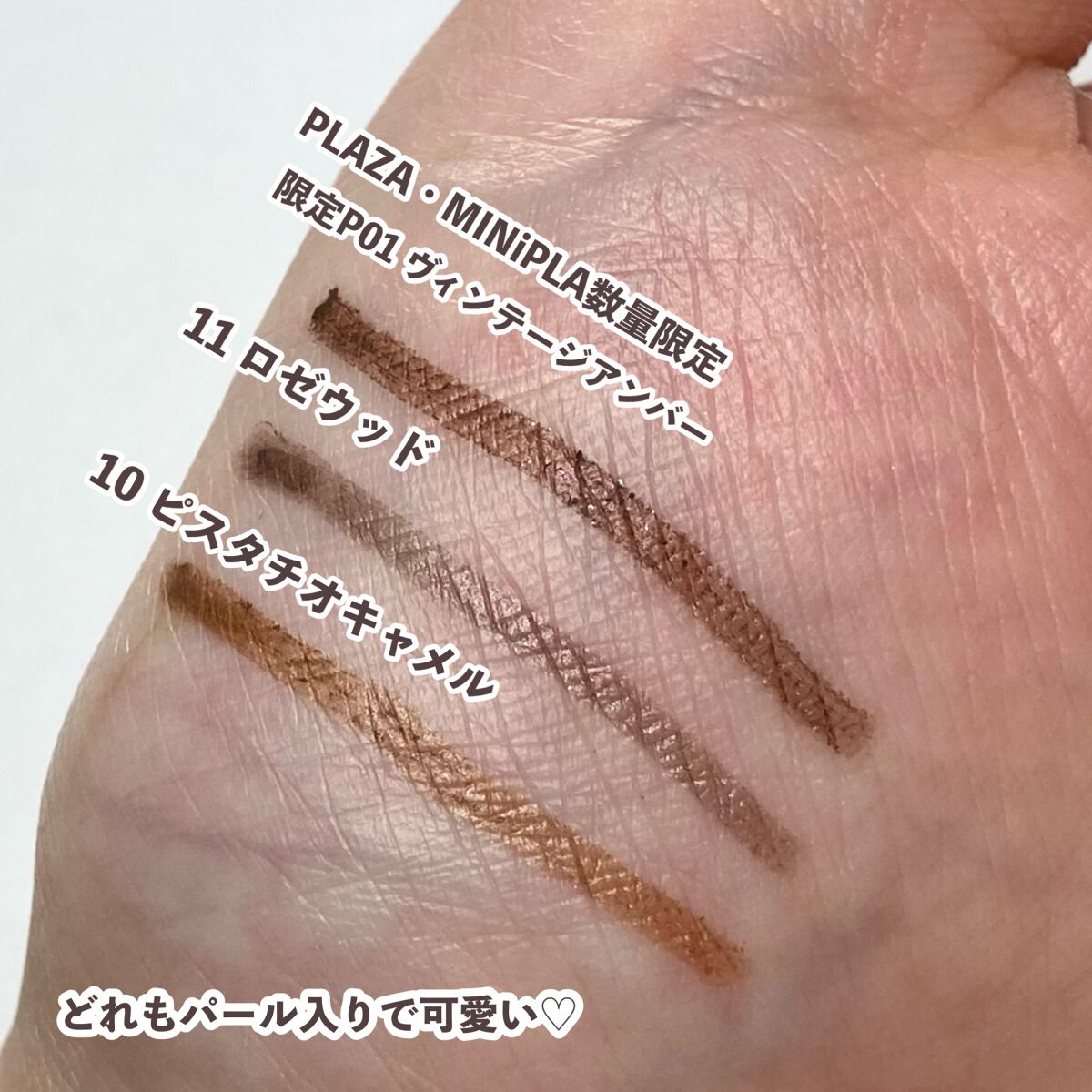CEZANNEのジェルライナーめっちゃ良すぎる(( ⁎′̥̥̥ ⌑ ‵̥̥̥ ))!! 肌馴染みのいいカラーでうるうるで、ぜんぜん落ちない◎しかも550円税込って!!すごすぎます! 今回使ったのは50ピンクベージュです。 ・トーンアップアイシャドウ 10ベリーブラウン638円税込 ブラウンみが強いので甘すぎない仕上がりに♡ ベリーという名のとおり青みのあるピンクブラウンです。ブルベさん向け♡ ・描くふたえアイライナー 20影用グレージュ660円税込 絶妙な薄さと影感!これ以外涙袋ラインは考えられない! ・極細 アイライナーR 20ブラウン 638円税込 プチプラなのに描きやすいし、にじまない。ついつい手に取っちゃうアイライナー!