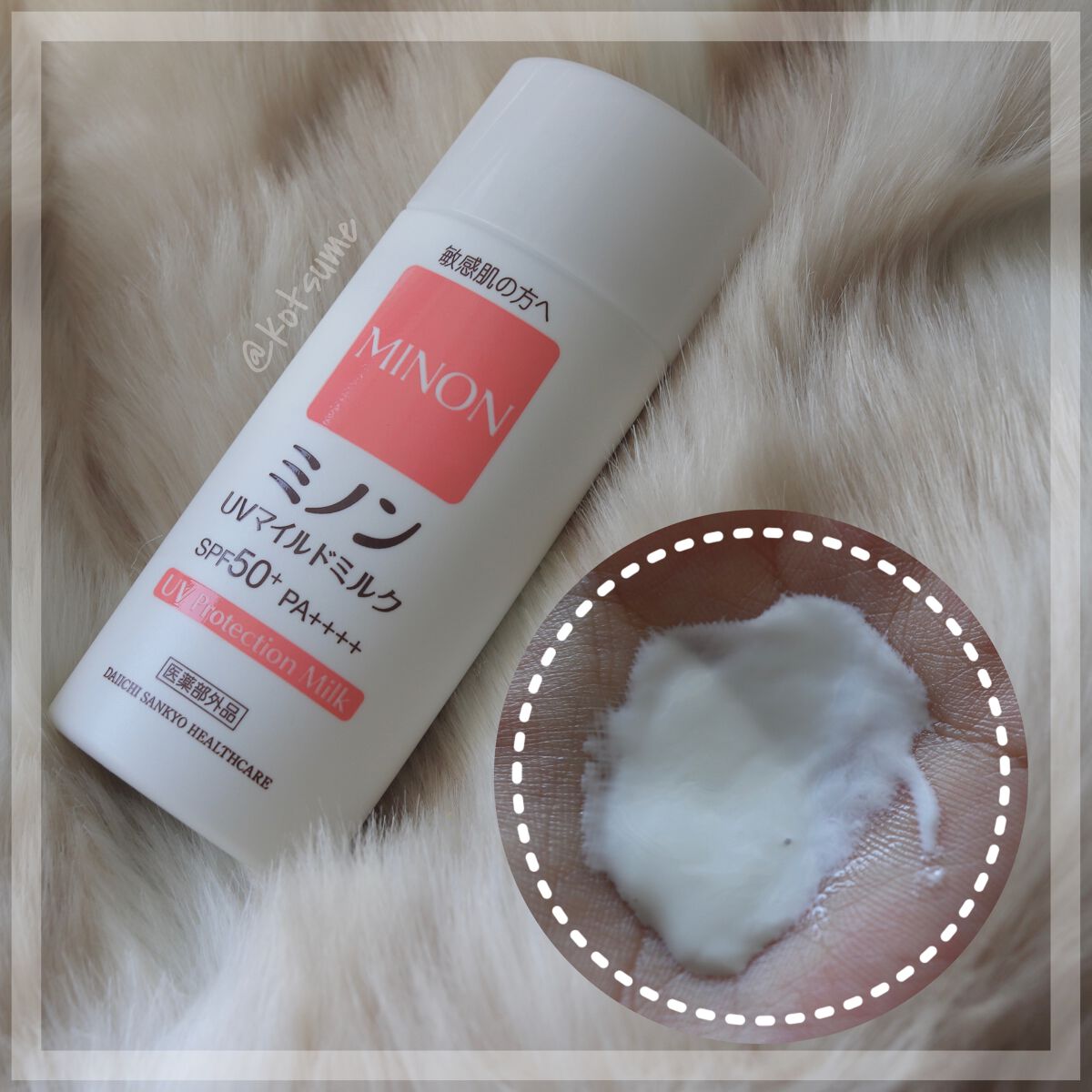 - <ミノンUVマイルドミルク> グリチルリチン酸2K、デカメチルシクロペンタシロキサン、低温焼成酸化亜鉛、パルミチン酸2-エチルヘキシル、微粒子酸化チタン、1,3-ブチレングリコール、メチルシロキサン網状重合体、リンゴ酸ジイソステアリル、グリセリルグルコシド液、メチルポリシロキサン、ポリヒドロキシステアリン酸、オクテニルコハク酸トウモロコシデンプンエステルアルミニウム、ポリオキシエチレン・メチルポリシロキサン共重合体、メチルハイドロジェンポリシロキサン、セスキイソステアリン酸ソルビタン、水酸化アルミニウム、架橋型メチルポリシロキサン、ラウロイルグルタミン酸ジ(コレステリル・ベヘニル・オクチルドデシル)、フェノキシエタノール、セスキオレイン酸ソルビタン、含水ケイ酸、グリコーゲン、コレステロール