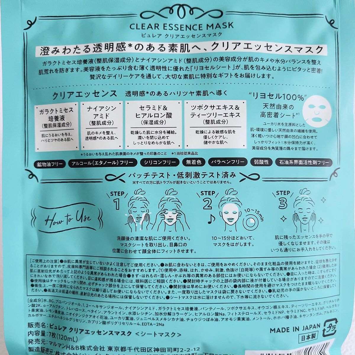 ピュレアクリアエッセンスマスク 7枚120ml¥660使った翌日は、透明感と肌の触り心地がモッチモチでびっくり🫢🫧これはリピしたい!♡ガラクトミセス培養液、ナイアシンアミド、セラミド、ヒアルロン酸、ツボクサエキス、ティーツリーなど美容成分がた...