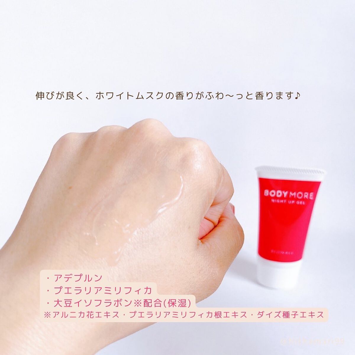 - 形状記憶ポリマーがナイトブラのようにバストを包み込むジェル。ハリを与えて、寝ながら美乳ケア。新成分「アデプルン*」配合。従来のプエラリアミリフィカ*、大豆イソフラボン*も配合。うるおいを与えて弾むようなハリのある肌に。みずみずしくて伸びがよいジェルで気持ちよくケアできる付け心地。バストの脇肉、横流れケア、マッサージにも。低刺激な使い心地、無添加処方(ノンパラベン)。 *整肌成分