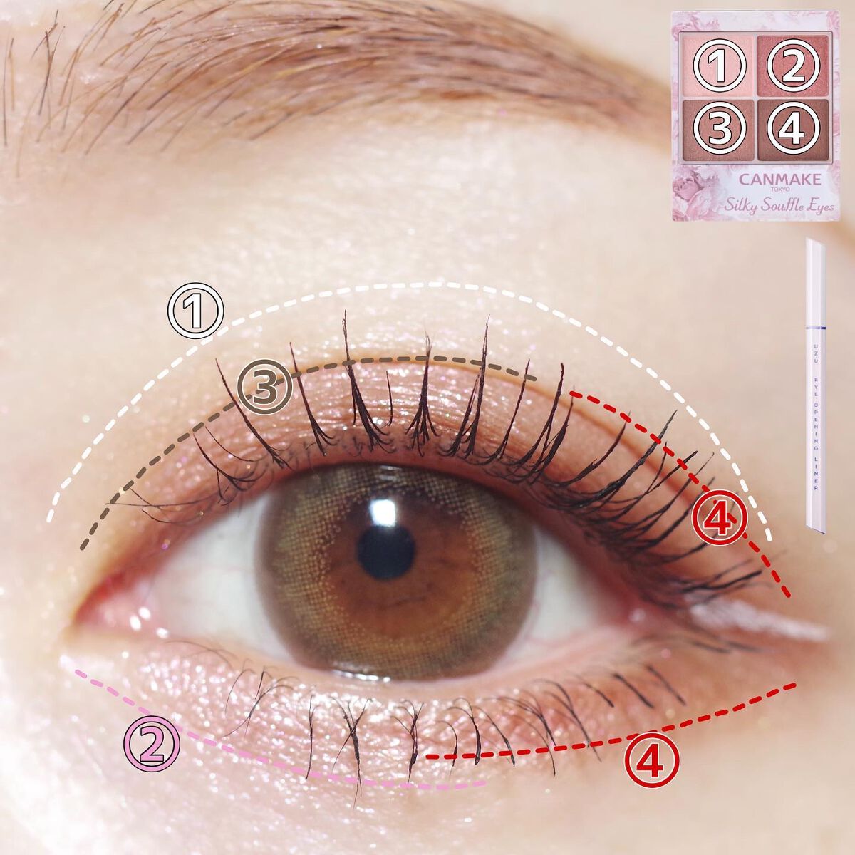 目が1.5倍に見えるアイメイク方法👀 完全自己流なので、参考程度に見てくださると嬉しいです♡ キャンメイククリーミータッチライナー 02 ミディアムブラウンを目尻にひく