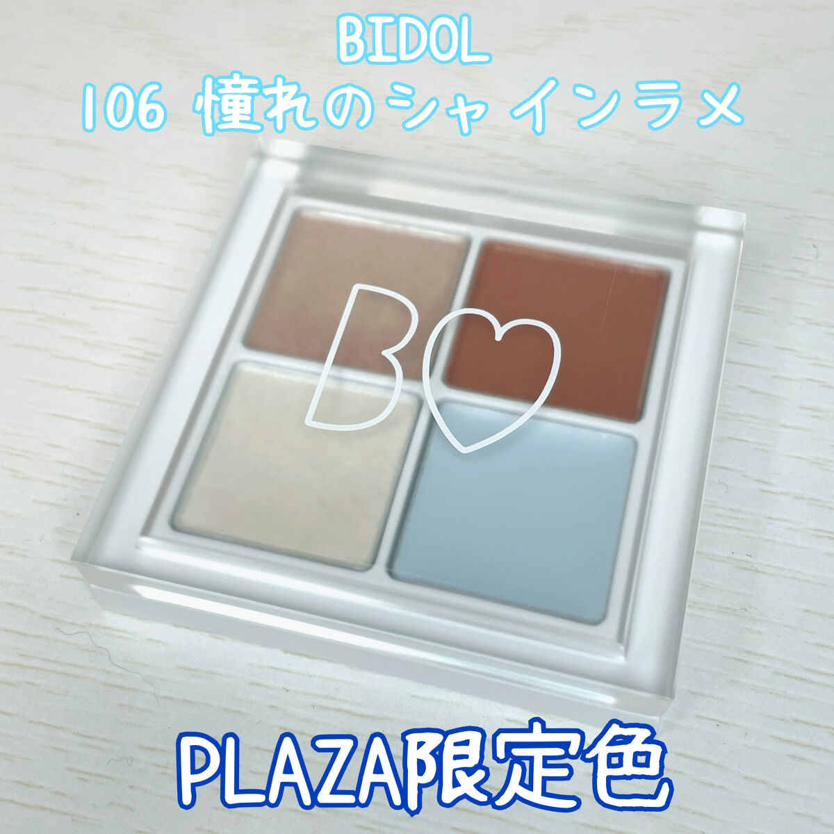 bidolTHEアイパレR106 憧れのシャインラメ PLAZA・MINiPLA限定色 旧¥1,980【手順】1.アイホールと涙袋全体に1のカラーをのせます2.2のカラーを二重幅に乗せます3.3のカラーを目頭にポンと乗せます4.4のカラーを涙...