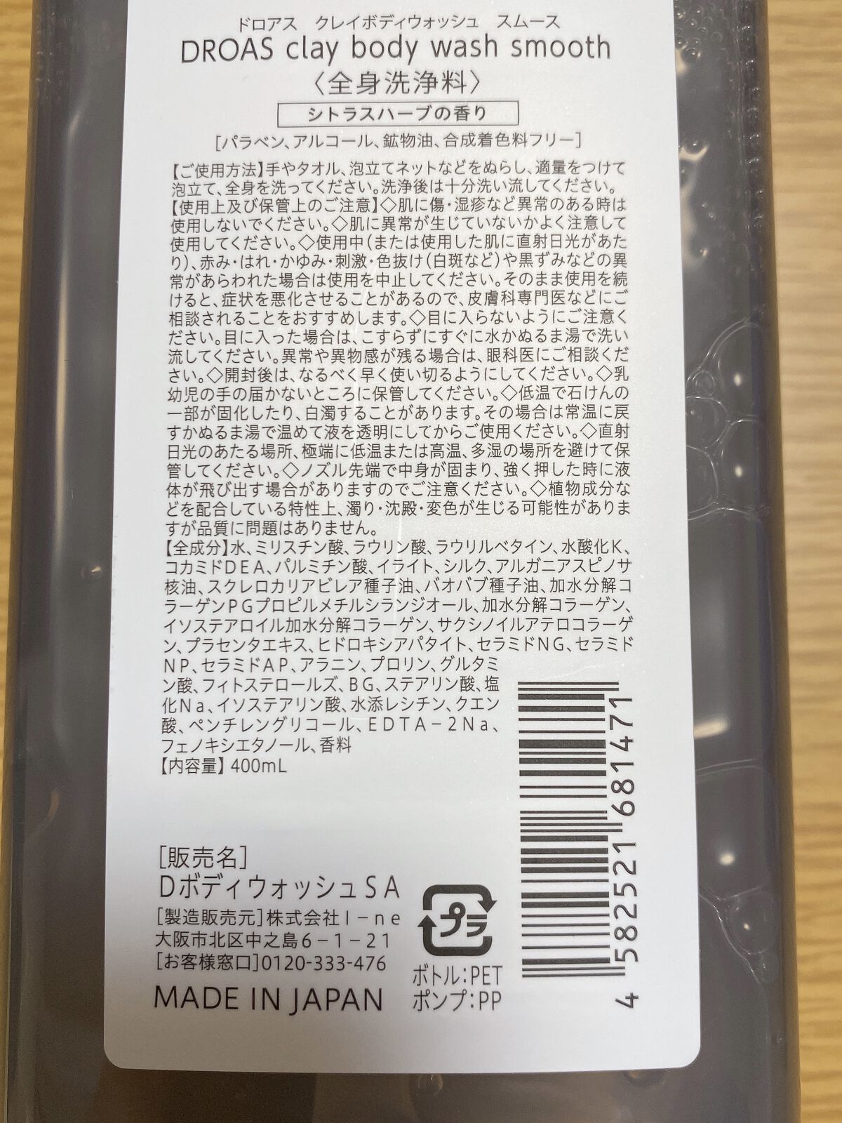 商品詳細情報DROAS クレイボディウォッシュ スムース