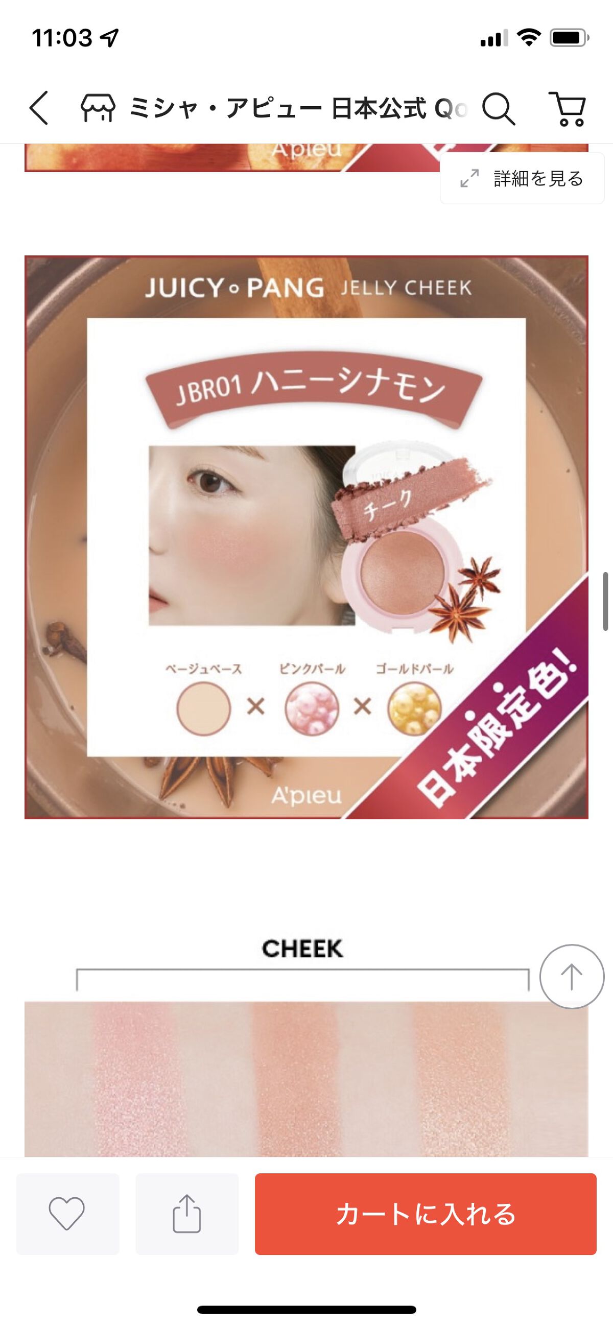 A’pieuアピュージューシーパンジェリーチークCR01RD01ヘビロテしてる個人的マストアイテム!ふんわり感もしっとり感も、じゅわっと感も作れちゃう☺️質感としては、パウダーファンデよりもリキッドorクッションファンデと合わせる方が良いので...