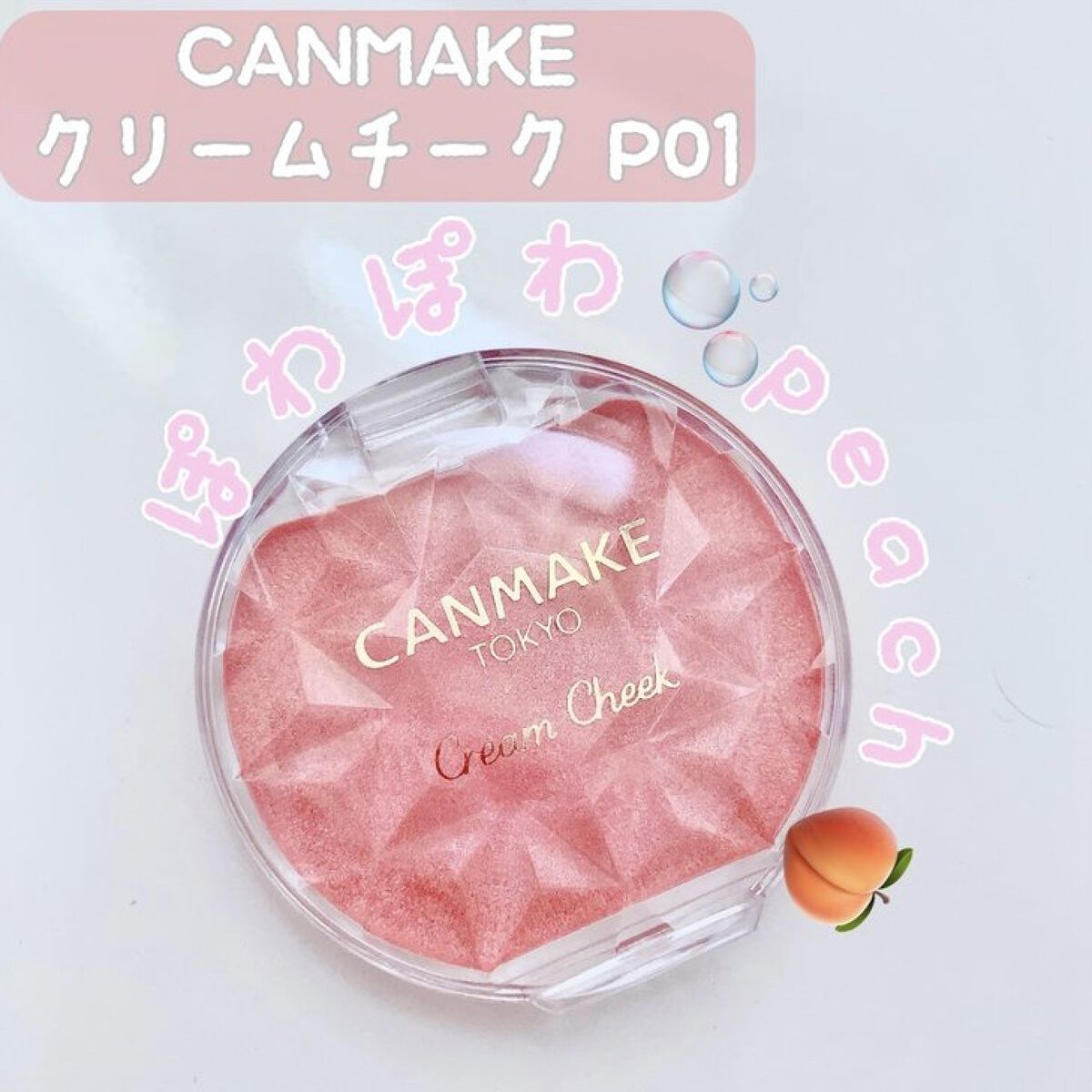 生ツヤ感爆誕 キャンメイククリームチークパールタイプP01ピーチダズル638円 むにゅっとした質感なのに指にとってみるとパウダーのようなサラサラとしたテクスチャー パール配合だからツヤ感たっぷり コンパクトで持ち運び便利