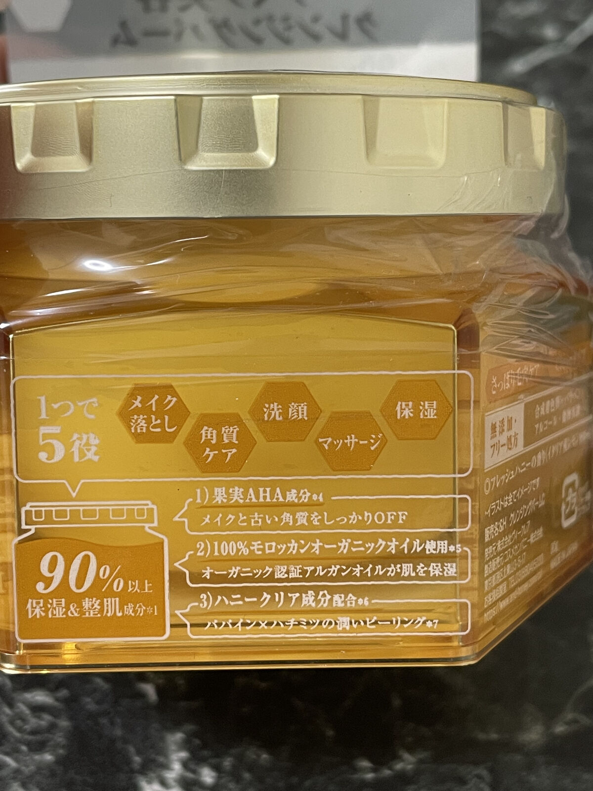 - クレンジングバーム クリアは、さっぱり毛穴ケアシリーズ。 パパイン*1とハチミツ*2の潤いピーリング効果*3により、さっぱりとしたクリアな肌へ導きます。 さらに製品の90%以上※1をハチミツ*2やアルガンオイル*4、オーガニックヒアルロン酸*5などの保湿&整肌成分で構成し、ハニークリア成分*6が、毛穴汚れ・皮脂をケアします。 【商品特長】毛穴汚れをしっかり落とし、さっぱりとしたクリアな肌へ導きます 【仕上がり】さっぱり 【おすすめの方】毛穴ケアしたい方 【香り】フレッシュハニーの香り ※1 基剤を除く、水を含む *1 角質ケア *2 保湿 *3 肌表面の古い角質の洗浄 *4 アルガニアスピノサ核油(保湿) *5 加水分解ヒアルロン酸(保湿) *6 パパイン(角質ケア)、ハチミツ(保湿)