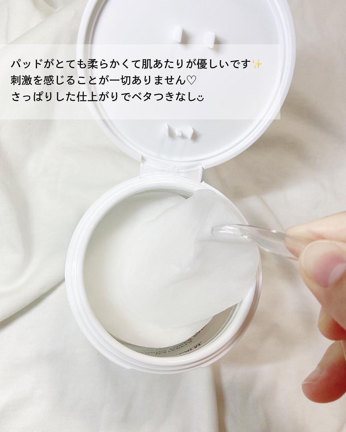 | パッド自体は柔らかく、美容液も多め。拭き取った後はしっかりとお肌が潤います♡ | 詳細を見る | ||