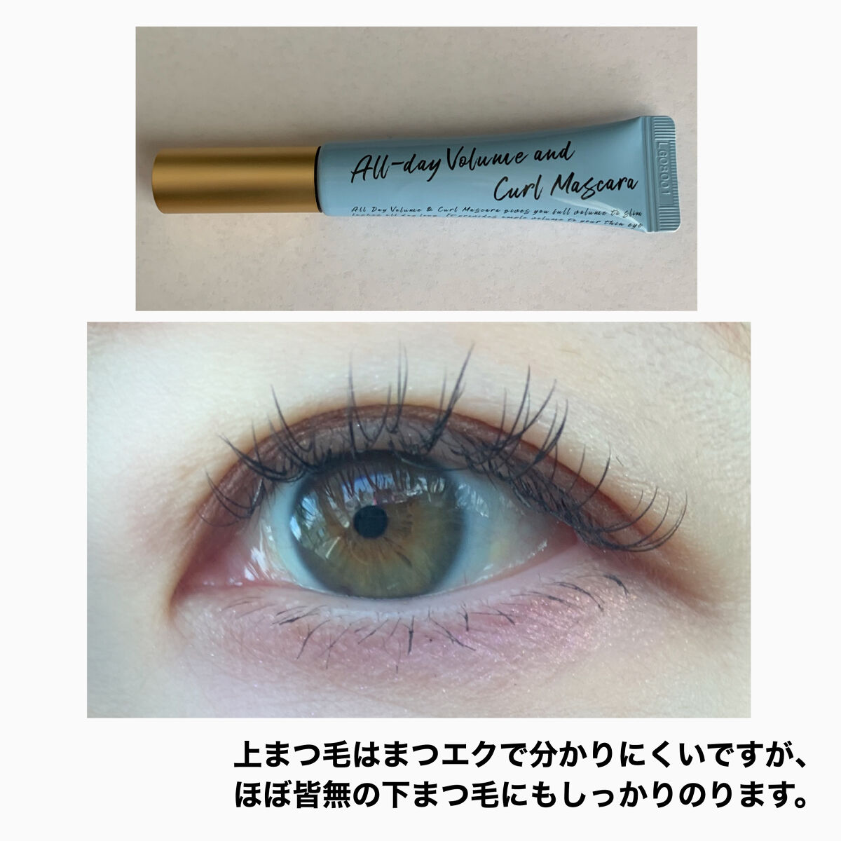 Milk Touch オールデイ ボリュームアンドカールマスカラです😌 細目のブラシで塗りやすく、ボリュームが出てカールアップもするなと思いました✨ 落ちにくいからちょっと落としにくさも感じました。 カールキープされる