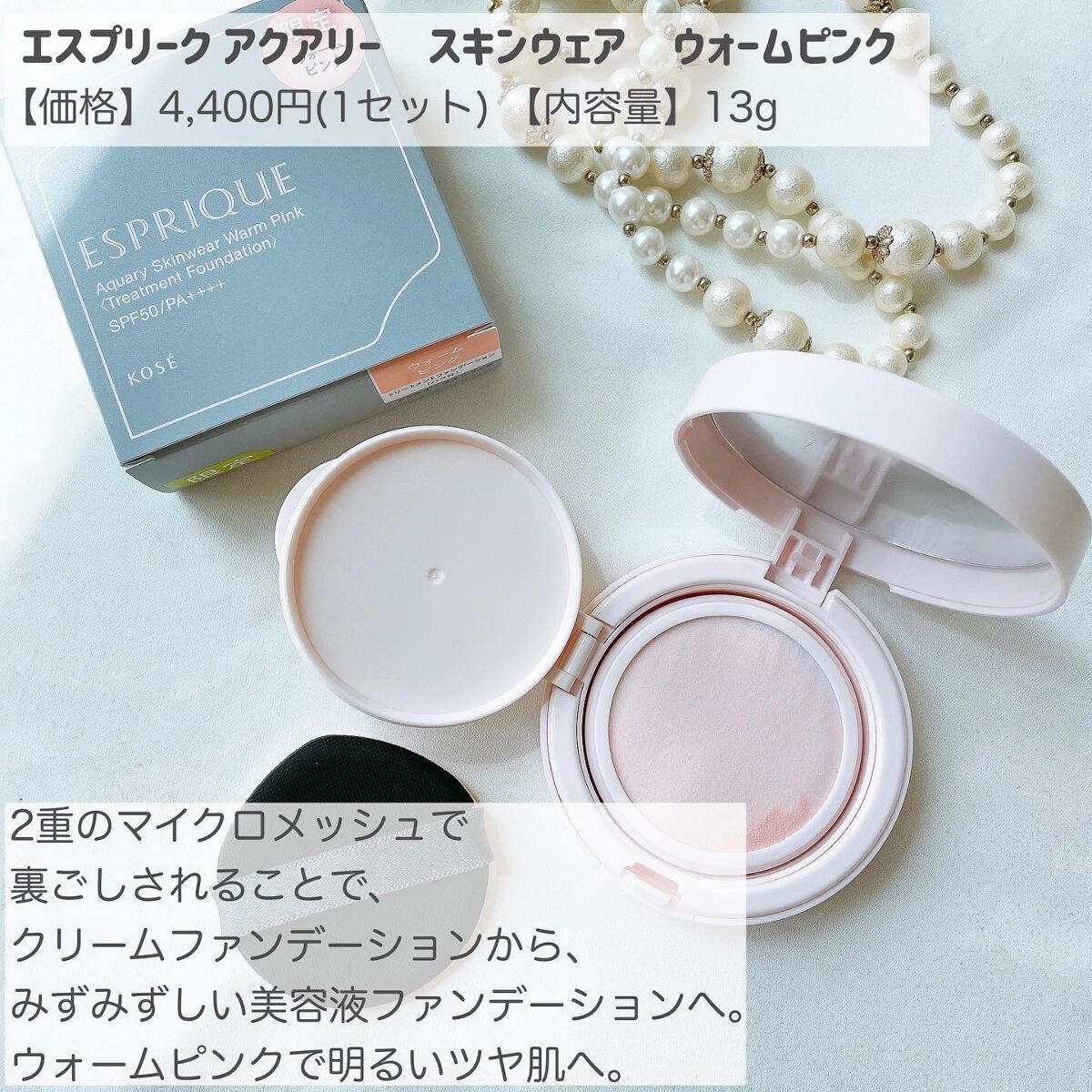 メッシュタイプのクッション大好きなんですが、エスプリークのこちらは少しまた違った感じがします☆ みずみずしいツヤとしっとり感、そして均一に広がる感じがとっても使いやすい♪ 紫外線はしっかりガードしてくれるところもすごい👏🏻うるツヤでハリ感のある肌に見せてくれます。