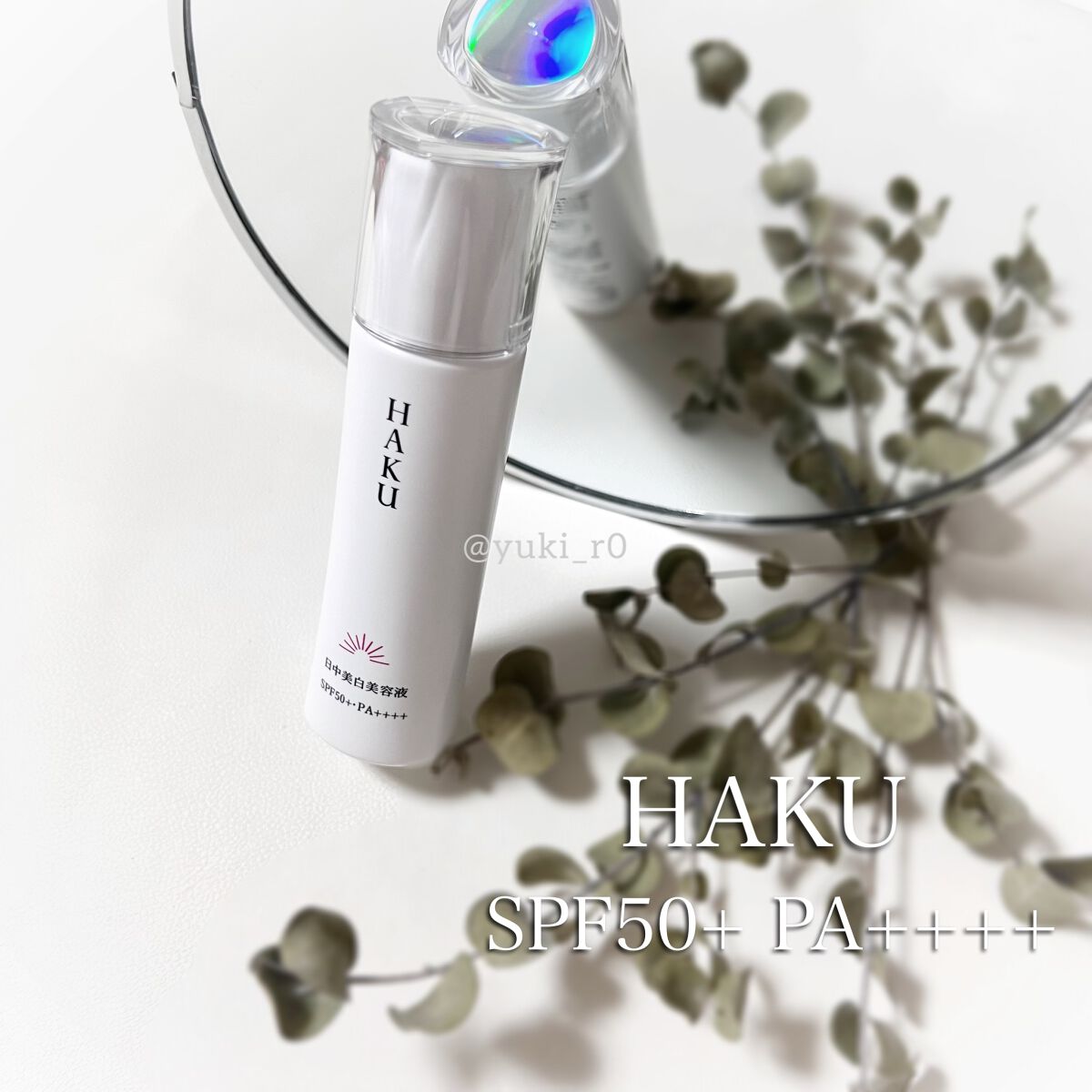 - 販売名「メラノフォーカスUV」 SPF50+・PA++++ 日中のHAKU。光を浴びる時間も味方に、日中だからできる美白ケアのアプローチ。 シミ予防研究の先端技術を搭載し、日中ならではの美白ケアを可能にした、薬用日中美白美容液です。光を浴びる時間も味方にして、明るく透明感のある肌に導きます。 ○2種の美白有効成分を肌の奥まで届け効かせる。 ○日中の肌環境に着目し、Wデイエフェクターを配合。うるおいを与え届ける。 〇ファインレッドパールαが効果的に光を放ち、シミや色ムラを目立たせない。トーンアップ効果で、明るく透明感のある仕上がり。 〇みずみずしい美容液がスーッとなじむ。化粧下地としても使える。 ○無香料・アレルギーテスト済み・ニキビのもとになりにくい処方。 (全てのかたにアレルギーが起きない、ニキビができないというわけではありません)。