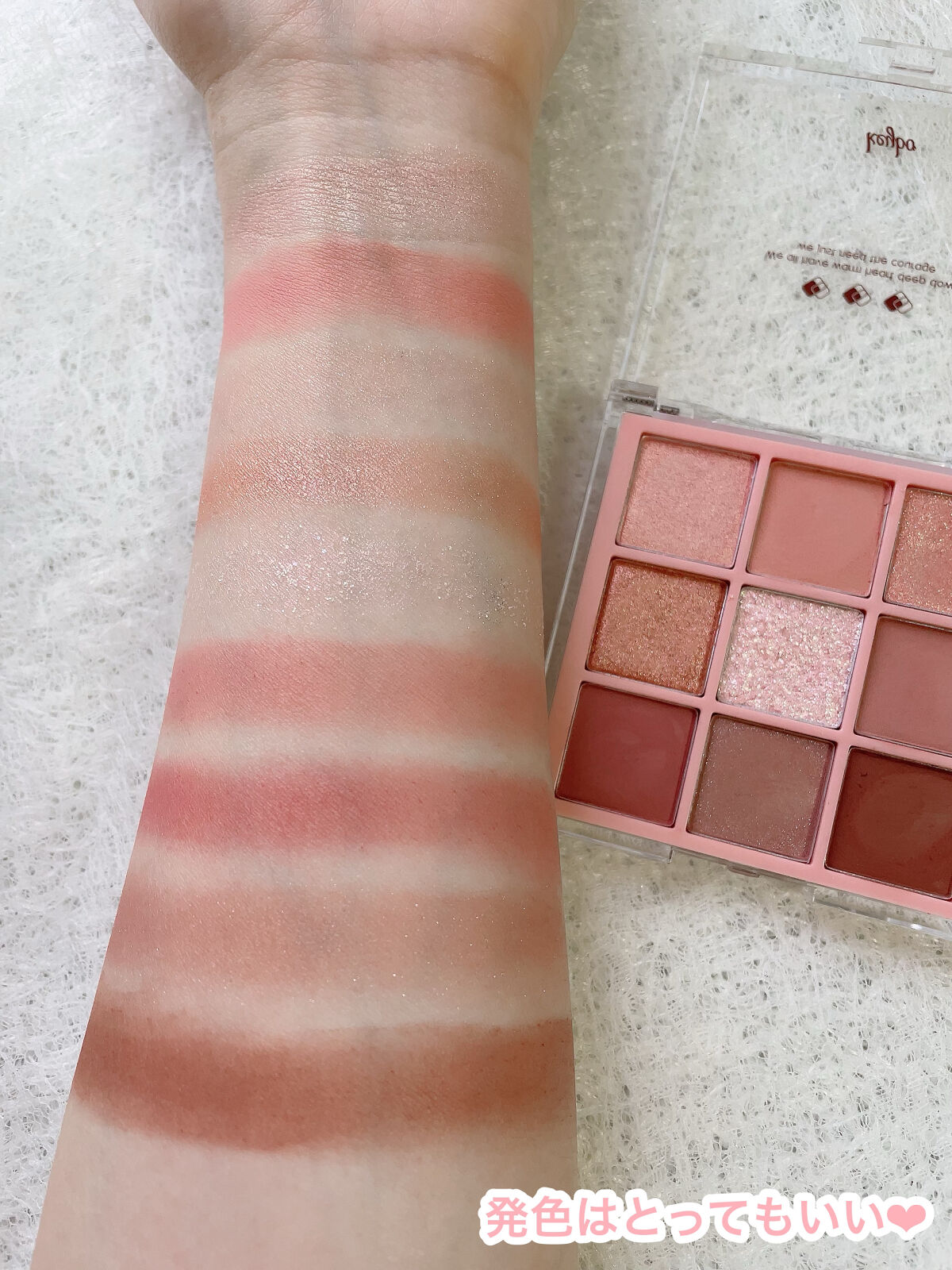 もう見ただけで絶対可愛い色なの分かる! 使いやすそうだなぁ〜って思った✌︎ 実際使ってみると発色は薄めだった! でも流行りのふんわりした感じ🤤💕 だからメイク初心者さんでも使いやすいアイパレット✨ このくすみカラーたまらないよね🤤💕 可愛いと言うより大人可愛い仕上がりになる♪ グラデにしても可愛いし 一色だけでも可愛い😍♥️ このワインモーヴはピンクメイクや赤系メイクにめちゃくちゃ合うの!! マスカラもアイシャドウも両方オススメです💕