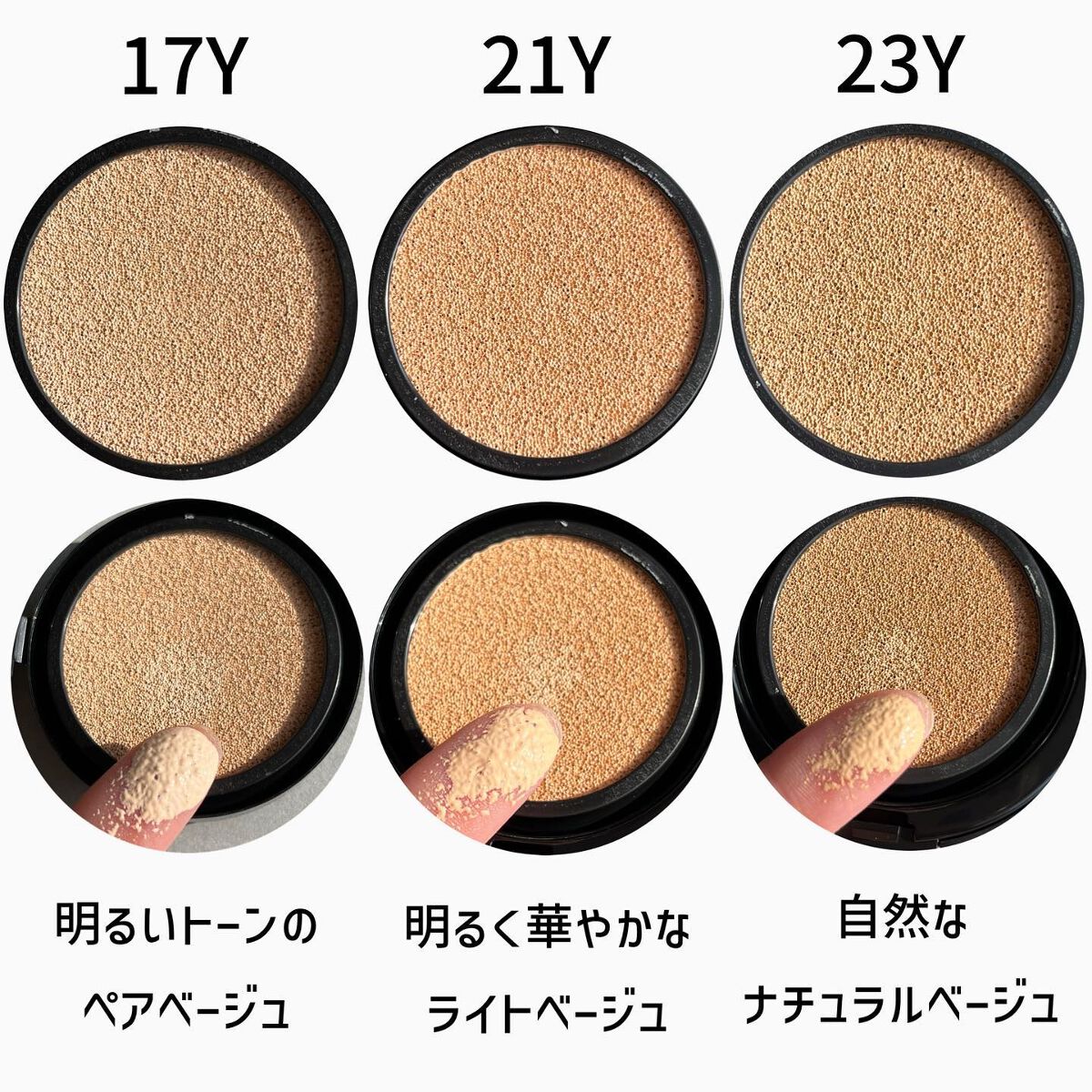 - <21Y> 水、酸化チタン、シクロペンタシロキサン、メトキシケイヒ酸エチルヘキシル、ジメチコン、サリチル酸エチルヘキシル、フェニルトリメチコン、ラウリルPEG-10トリス(トリメチルシロキシ)シリルエチルジメチコン、ジ(カプリル/カプリン酸)BG、グリセリン、ナイアシンアミド、プロパンジオール、1,2-ヘキサンジオール、トリシロキサン、合成フルオロフロゴパイト、イソドデカン、PEG-10ジメチコン、(アクリレーツ/メタクリル酸ポリトリメチルシロキシ)コポリマー、酸化鉄、ジステアルジモニウムヘクトライト、硫酸Mg、セスキオレイン酸ソルビタン、カプリル酸グリセリル、(セテアリルジメチコン/ビニルジメチコン)クロスポリマー、ステアリン酸、アルミナ、(ジメチコン/ビニルジメチコン)クロスポリマー、PVP、トリエトキシカプリリルシラン、水酸化Al、アデノシン、エチレンジアミンジコハク酸3Na、香料、トコフェロール <21P(日本限定色)> 水、酸化チタン、シクロペンタシロキサン、メトキシケイヒ酸エチルヘキシル、ジメチコン、サリチル酸エチルヘキシル、フェニルトリメチコン、ラウリルPEG-10トリス(トリメチルシロキシ)シリルエチルジメチコン、ジ(カプリル/カプリン酸)BG、グリセリン、ナイアシンアミド、プロパンジオール、合成フルオロフロゴパイト、1,2-ヘキサンジオール、トリシロキサン、イソドデカン、PEG-10ジメチコン、(アクリレーツ/メタクリル酸ポリトリメチルシロキシ)コポリマー、ジステアルジモニウムヘクトライト、硫酸Mg、酸化鉄、セスキオレイン酸ソルビタン、カプリル酸グリセリル、(セテアリルジメチコン/ビニルジメチコン)クロスポリマー、ステアリン酸、アルミナ、(ジメチコン/ビニルジメチコン)クロスポリマー、PVP、トリエトキシカプリリルシラン、水酸化Al、アデノシン、エチレンジアミンジコハク酸3Na、香料、トコフェロール <23Y> 精製水、二酸化チタン(CI 77891)、シクロペンタシロキサン、メトキシケイ皮酸エチルヘキシル、ダイメジメチコン、サリチル酸エチルヘキシル、フェニルトリメチコン、ラウリルPEG-10トリス(トリメチルシロキシ)シリルエチルジメチコン、ジ(カプリル/カプリン酸)BG、グリセリン、ナイアシンアミド、プロパンジオール、1,2-ヘキサンジオール、トリシロキサン、黄色酸化鉄(CI 77492)、イソドデカン、PEG-10ジメチコン、(アクリレーツ/メタクリル酸ポリトリメチルシロキシ)コポリマー、合成フルオロフロゴパイト、ジステアルジモニウムヘクトライト、硫酸Mg、セスキオレイン酸ソルビタン、カプリリル酸グリセリル、(セテアリルジメチコン/ビニルジメチコン)クロスポリマー、ステアリン酸、アルミナ、(ジメチコン/ビニルジメチコン)クロスポリマー、PVP、トリエトキシカプリリルシラン、水酸化酸化アルミニウム、アデノシン、エチレンジアミンジコハク酸3Na、トコフェロール、香料、リナロール、リモネン、赤色酸化鉄(CI 77491)、黒色酸化鉄(CI 77499)