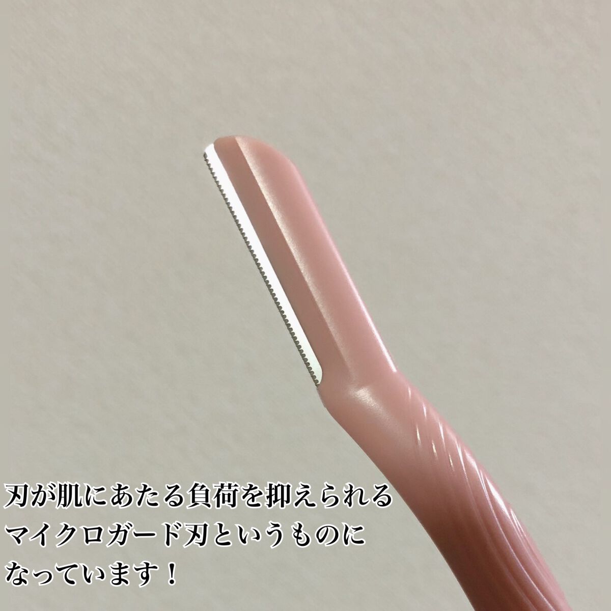 - 肌負担を最小限に。極小マイクロセーフティガード付。 口元、鼻の下、眉など顔全体をよりやさしく、キレイに整えます (1)世界最小*マイクロガード付:従来のセーフティガードよりも約2倍細かいマイクロガードが、刃が肌にあたる負荷を抑えることで肌負担を最小限**にし、肌に優しいシェービングを実現。 (2)細かいところもキレイにそれる:先端が細いスリムなヘッド。ていねいなケアができます。 (3)持ちやすく、すべりにくいハンドル:手にしっかりフィットして、思いのままに動かせます。
