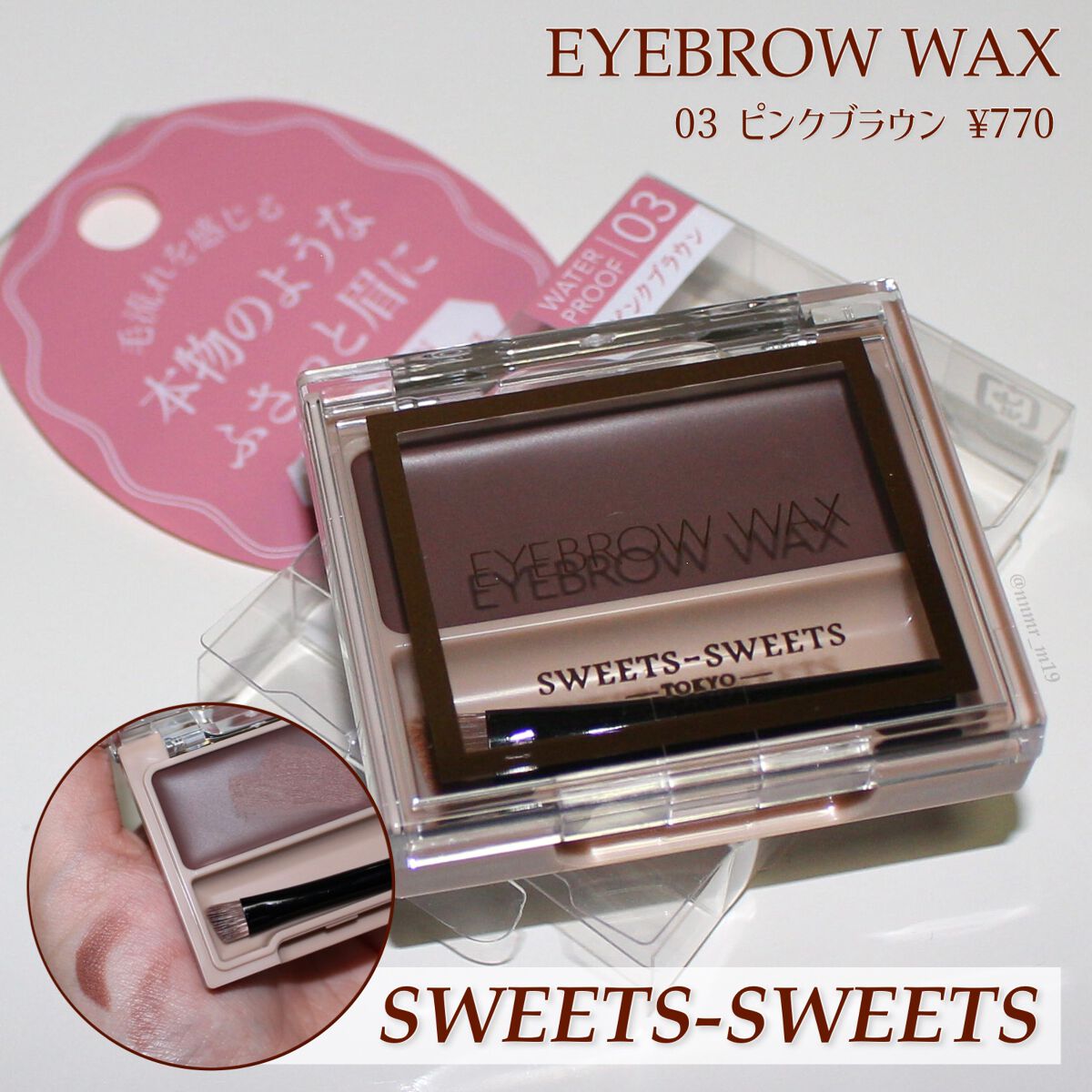 【とろけるいちごラテ🍓SWEETSSWEETSのアイブロウワックス】こすれや湿気が気になるときのアイブロウメイクにおすすめなアイブロウワックス!いくつかカラーがあるので自分の好みやメイクに合わせて使える◯今回紹介しているピンクブラウンはほんの...